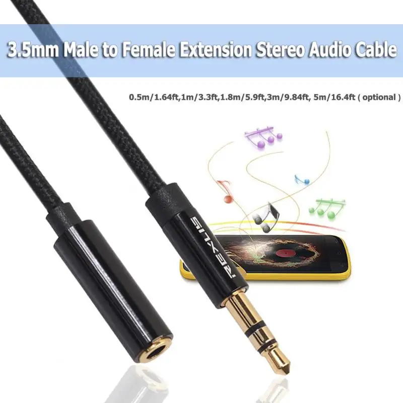 Comprar REXUS-Cable de extensión de auriculares 3,5 Jack macho a hembra, extensor auxiliar de Audio estéreo para teléfono, PC, ordenador, coche, MP3, 3,5mm