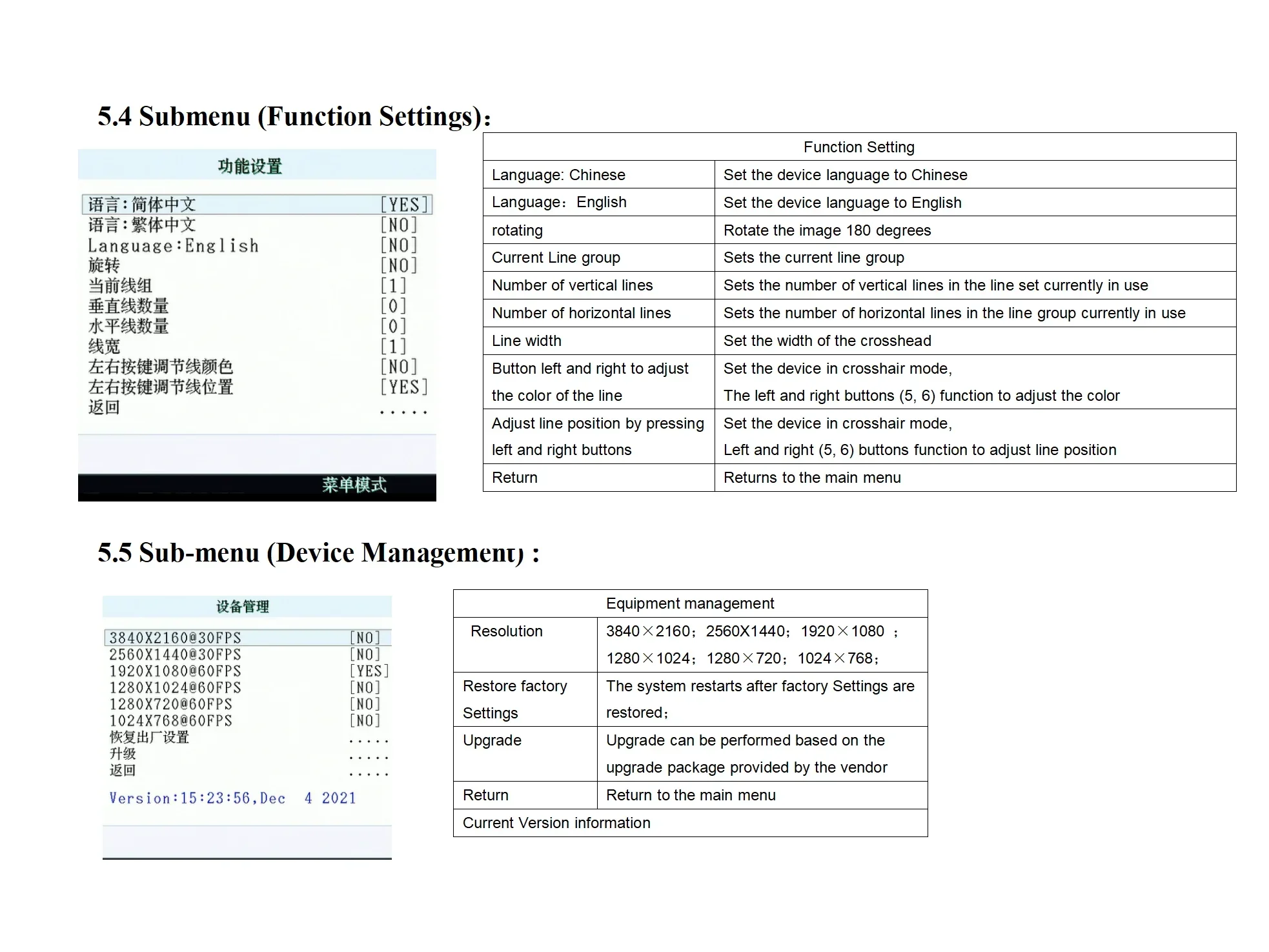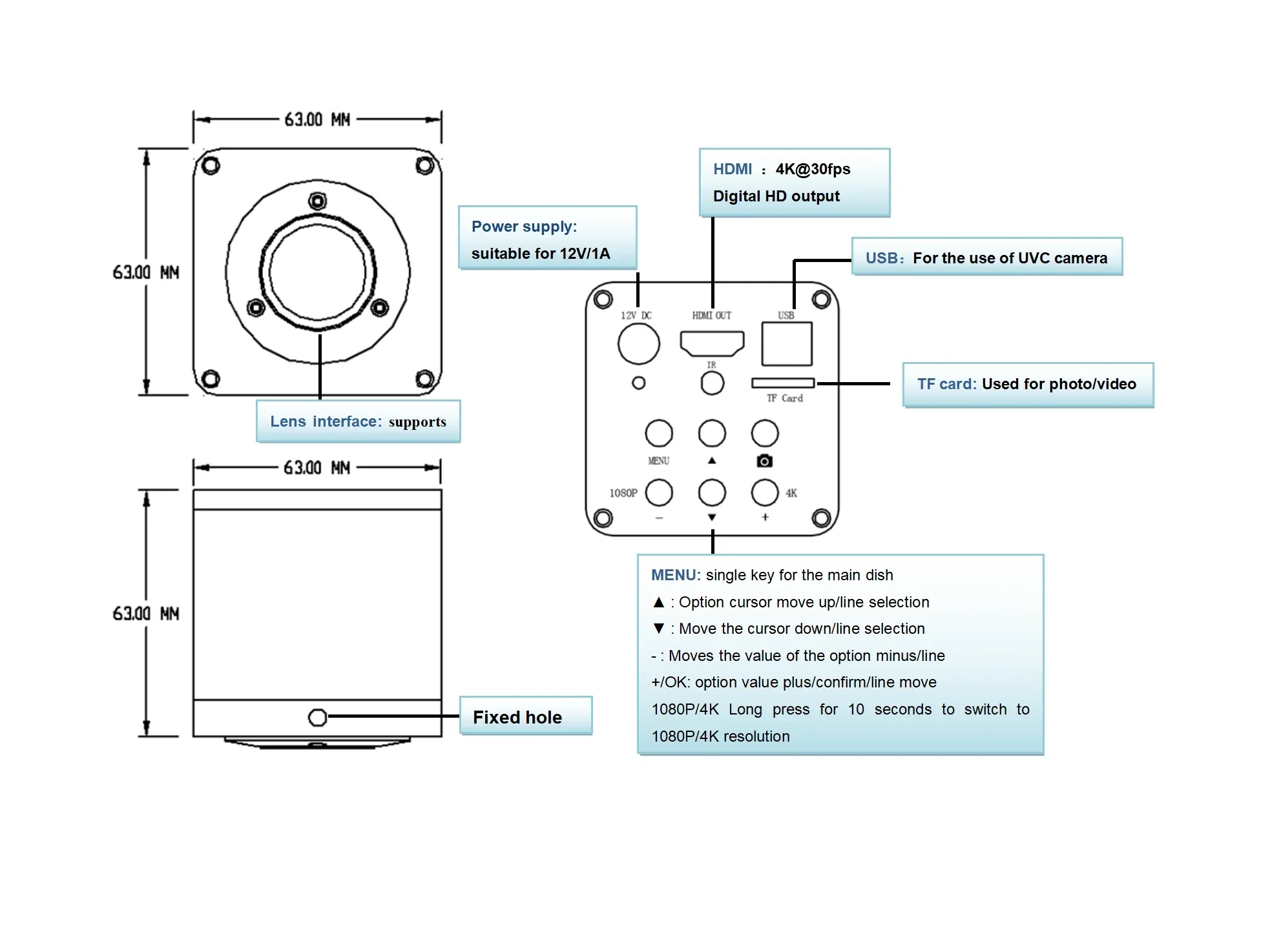 La cámara industrial HDMI tiene 8 líneas horizontales móviles o 8 líneas verticales, de las cuales se pueden seleccionar de 1 a 8 a través del menú.La resolución máxima de la salida HDMI es 1920x1080 60Hz.Para garantizar la seguridad, lea las instrucciones de funcionamiento en detalle.