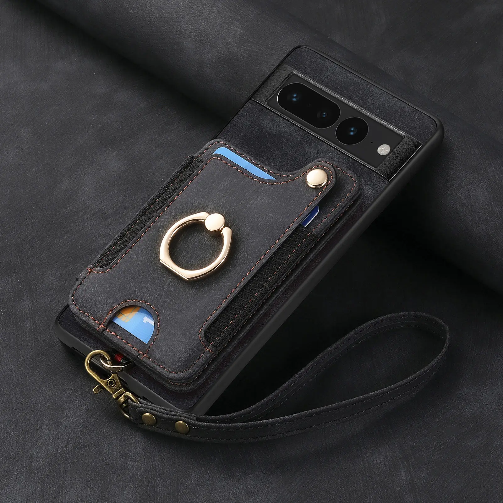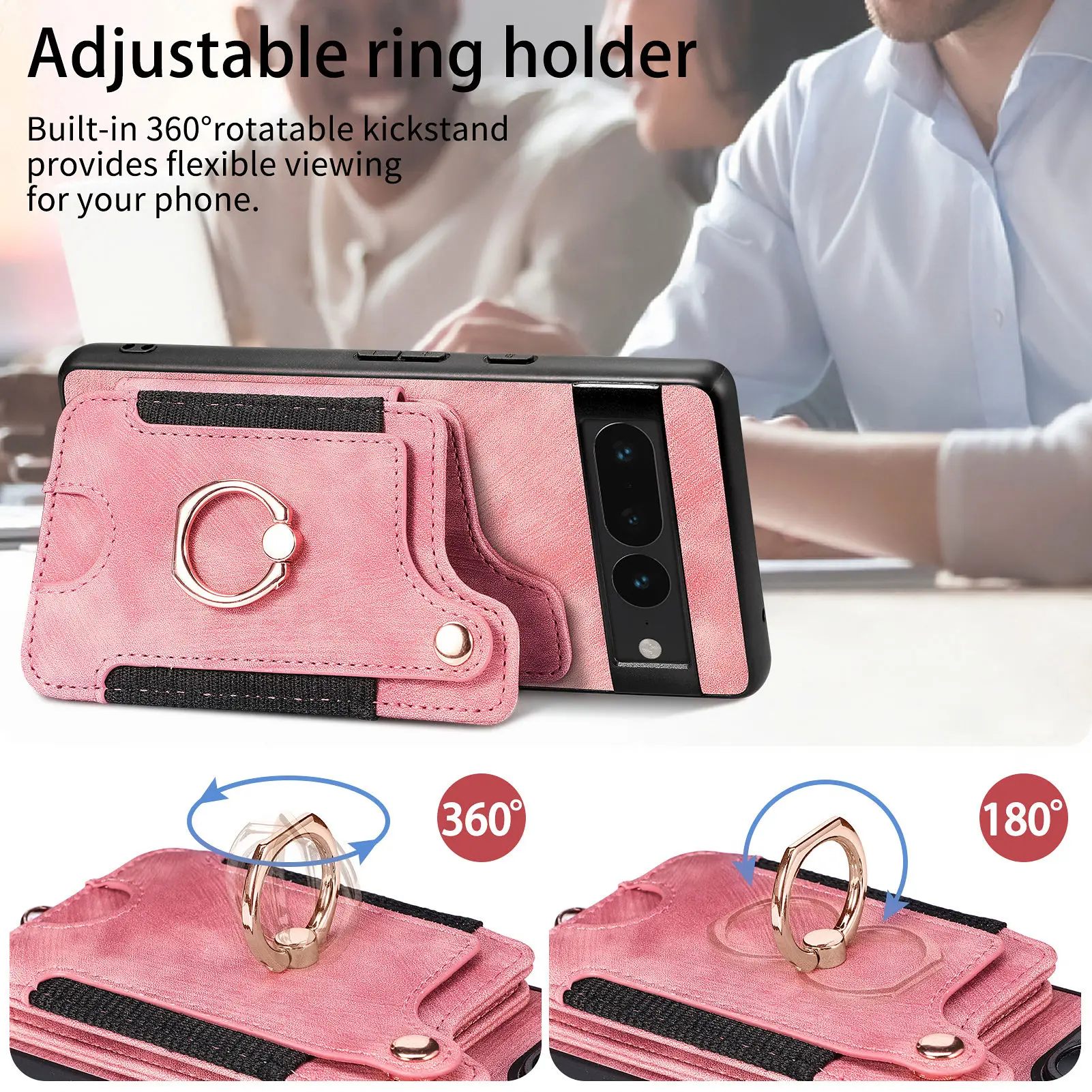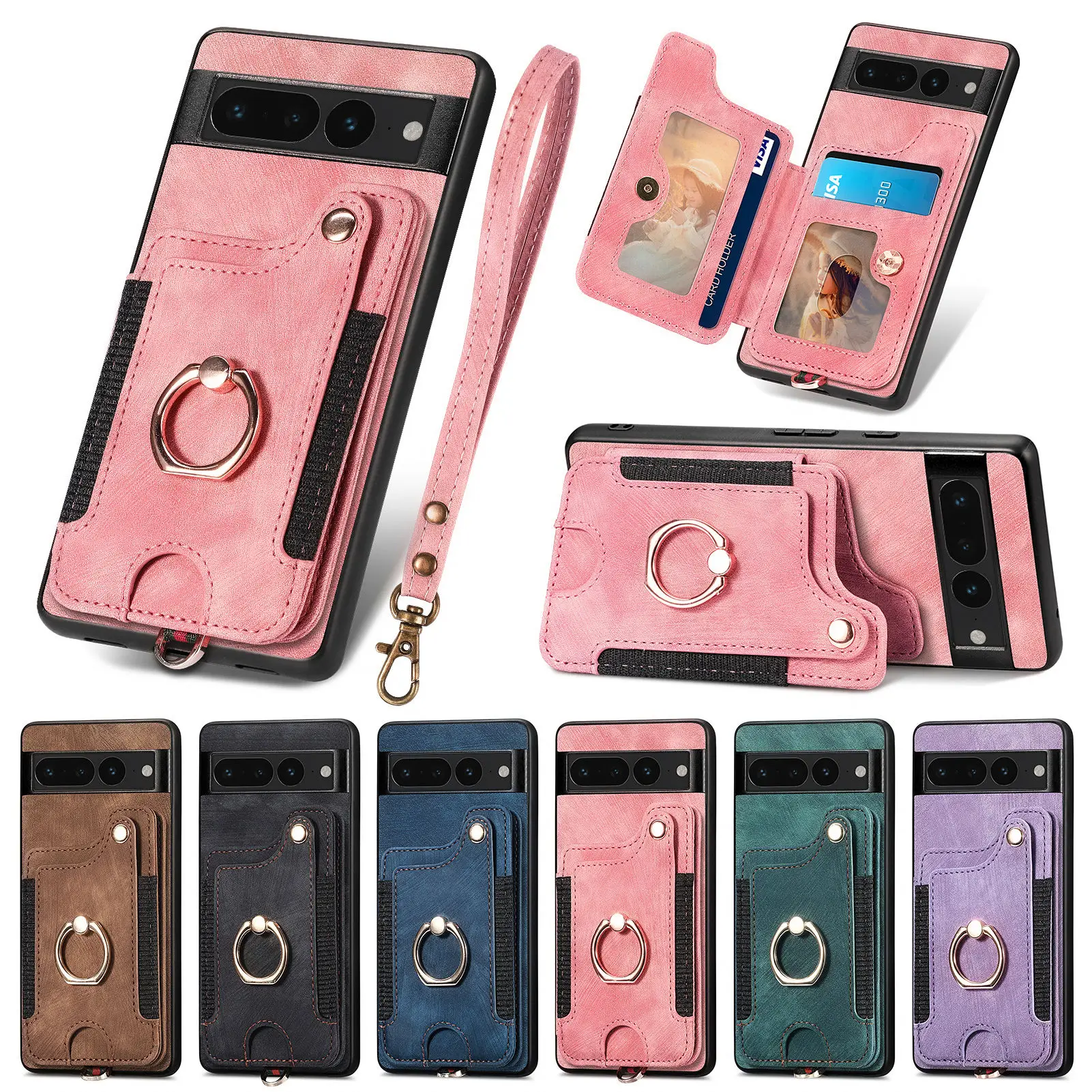 RFID Cards Solt Wallet Funda de cuero para Google Pixel 7 Pro 7A 8 6A 6 Soporte de anillo magnético Kickstand Back Bag Cover Fundas Coque