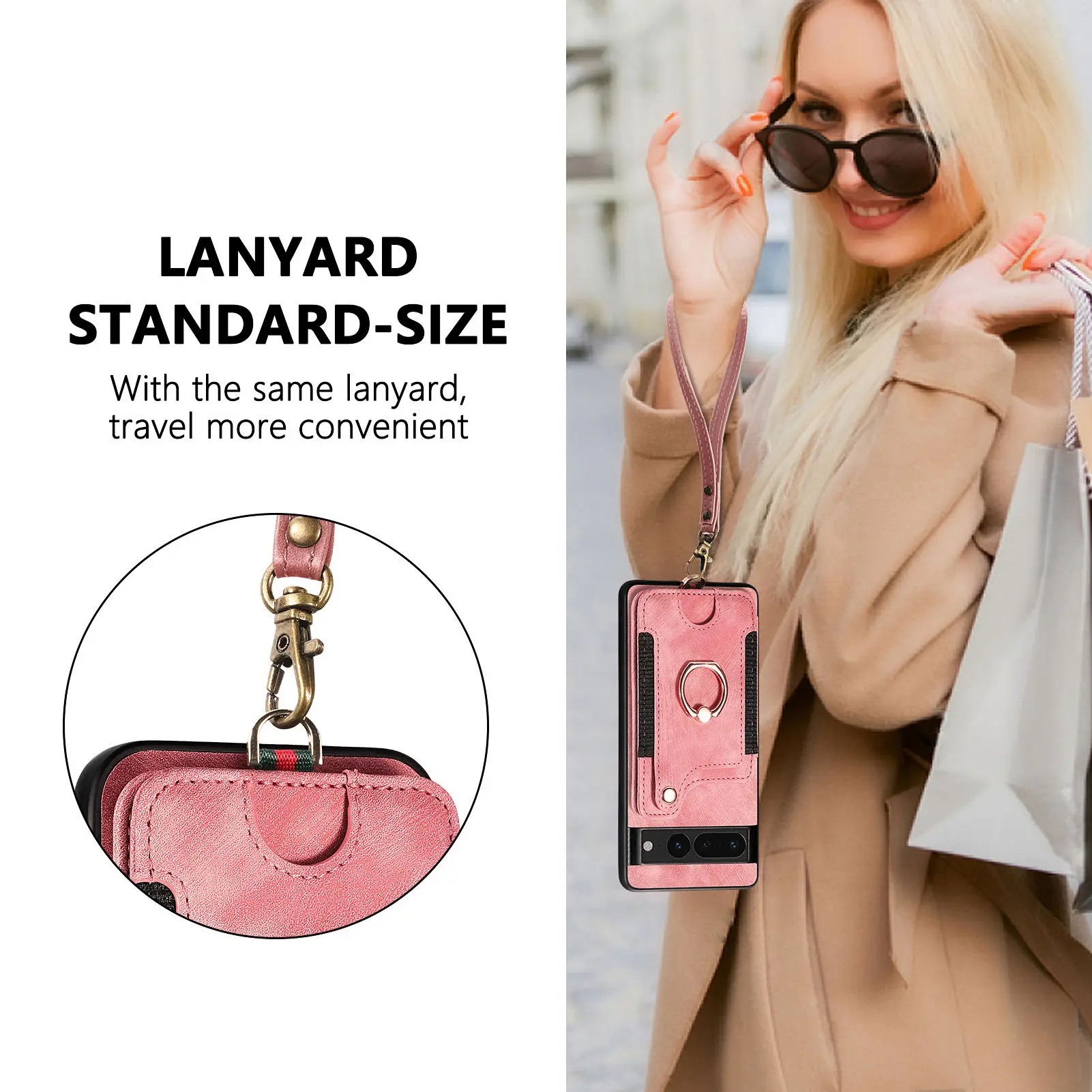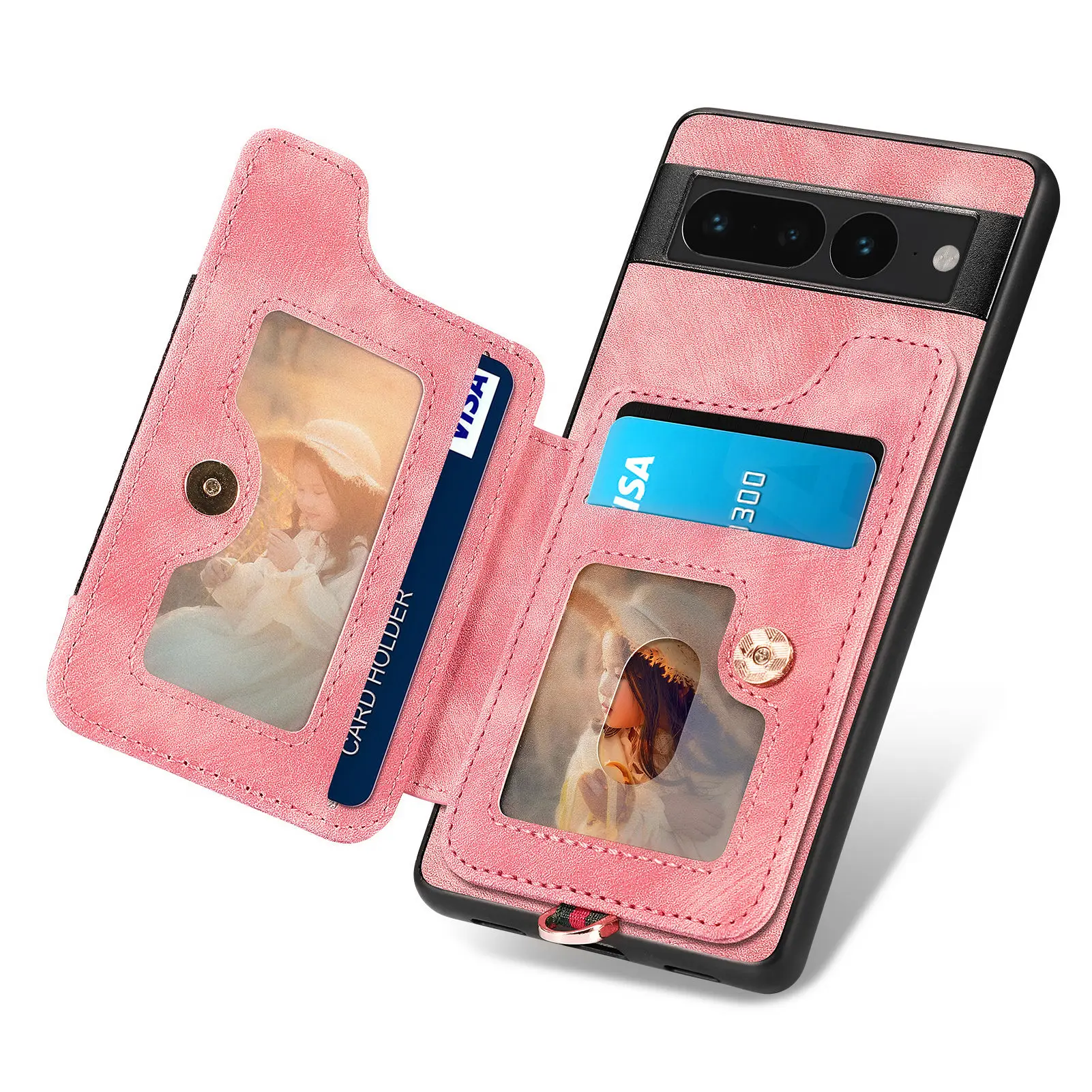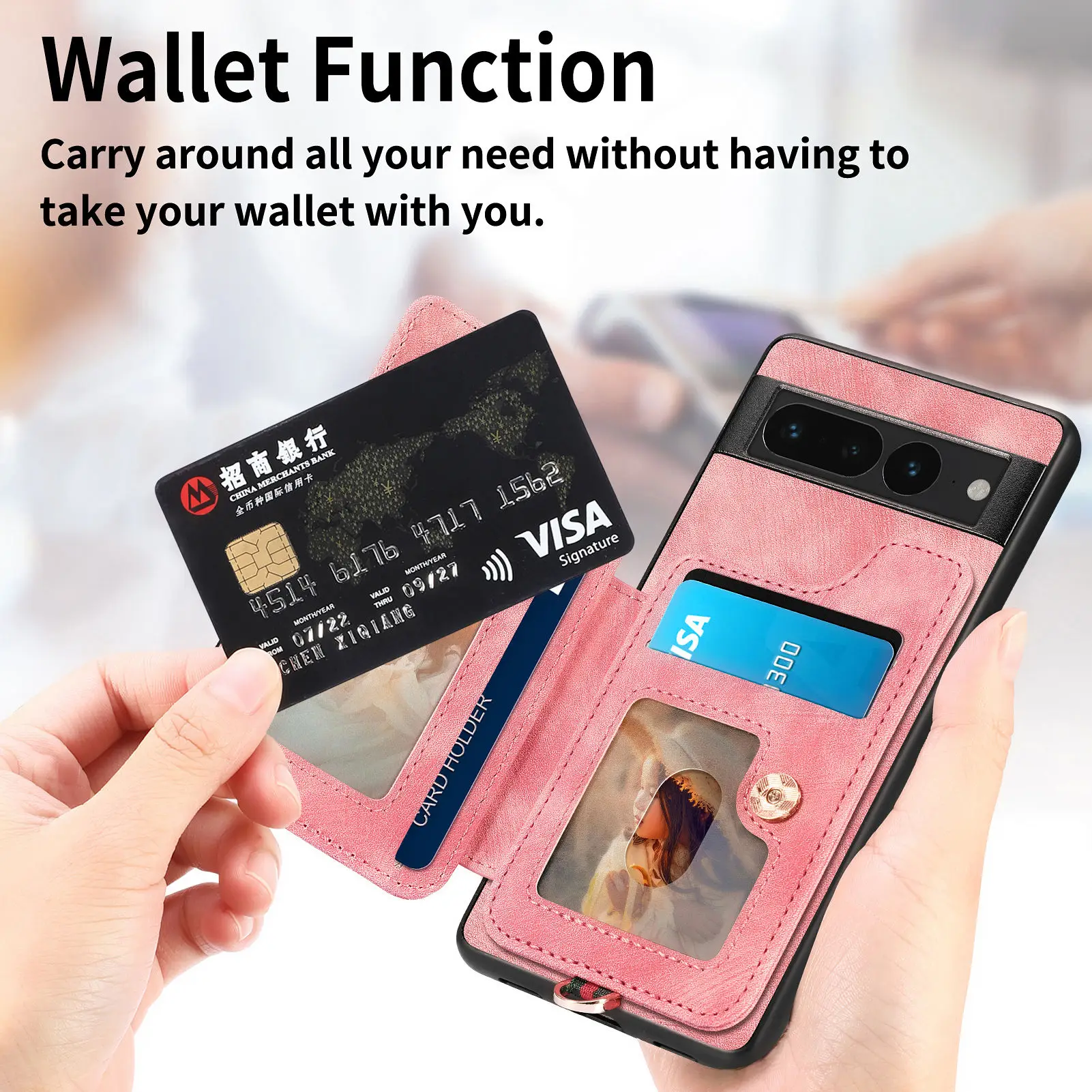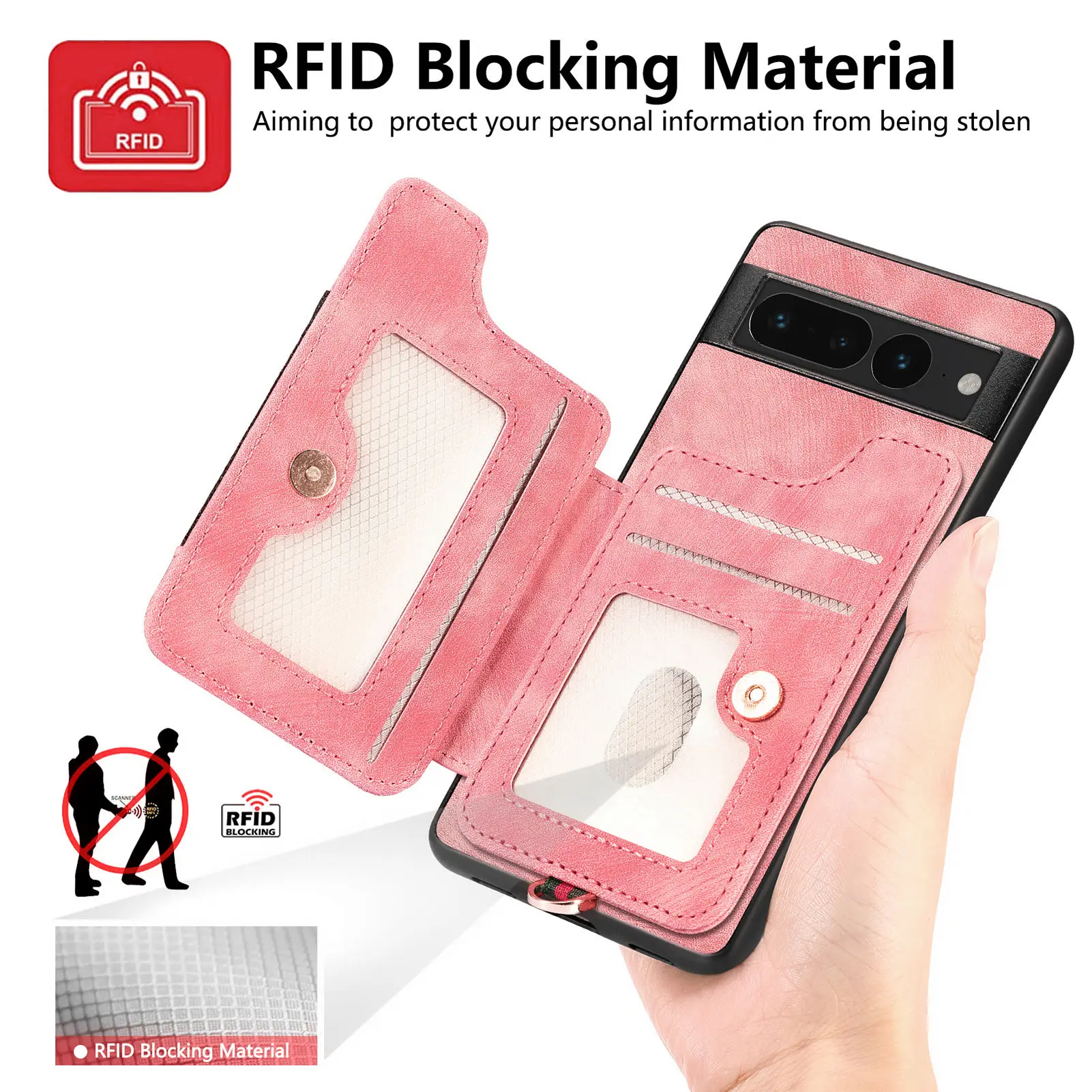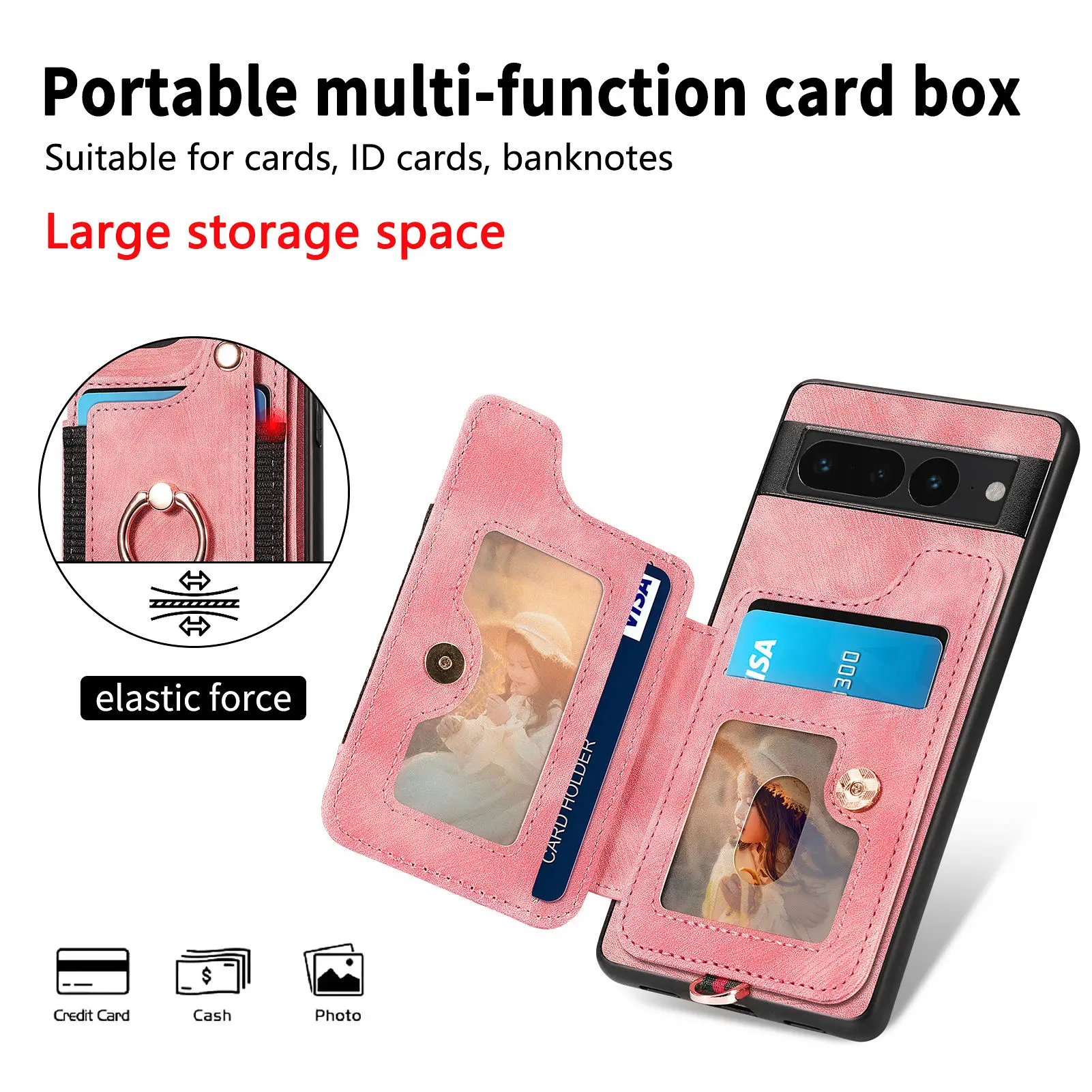 Comprar RFID Cards Solt Wallet Funda de cuero para Google Pixel 7 Pro, 7A, 8, 6A, 6, soporte de anillo magnético, Kickstand, Back Bag Cover, Fundas Coque