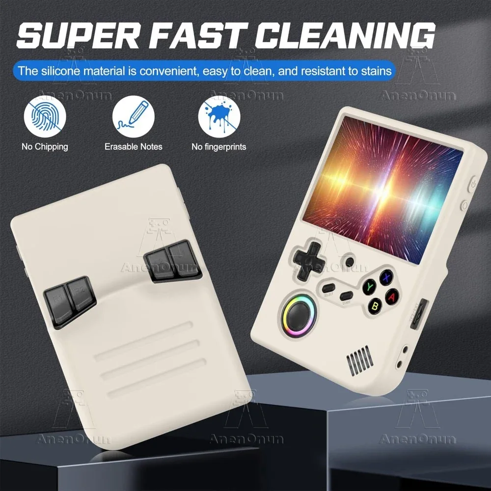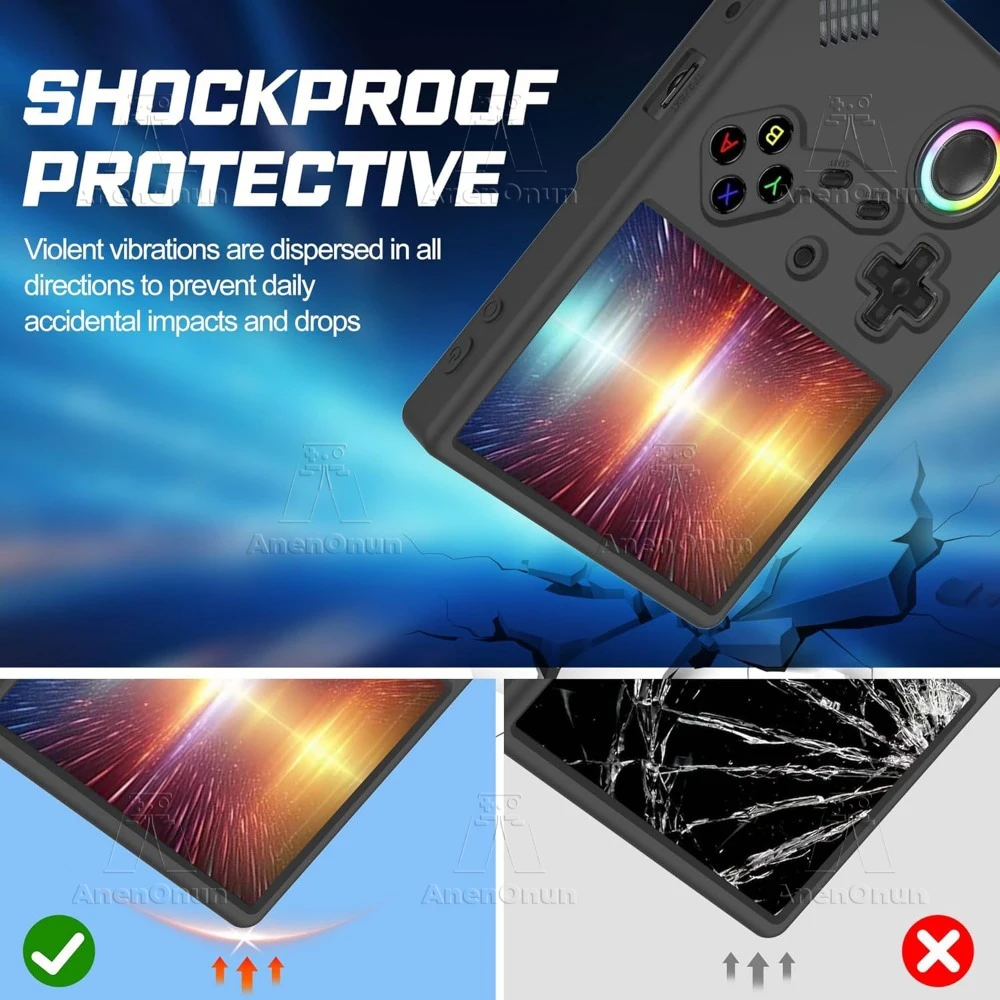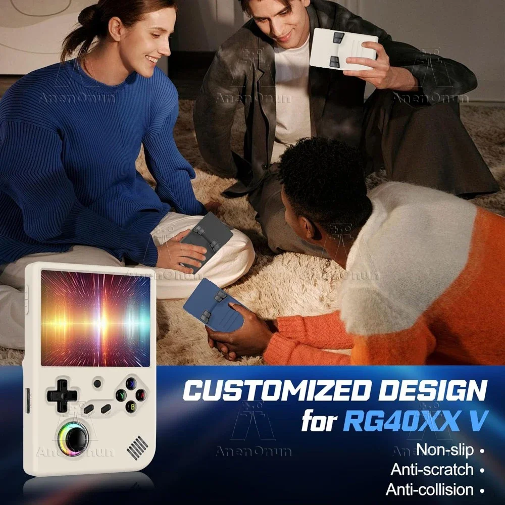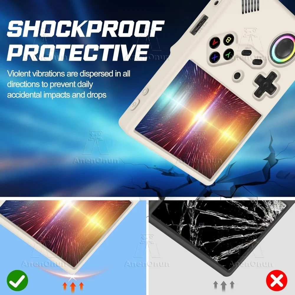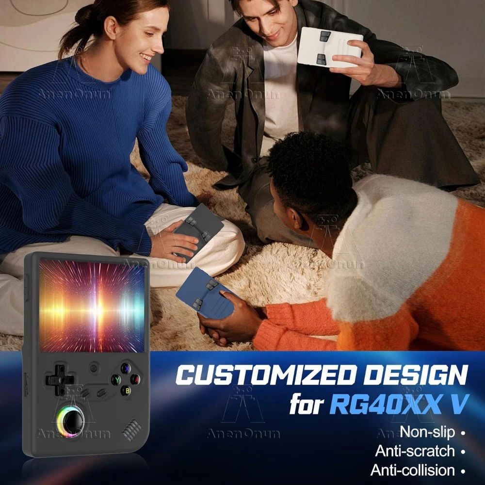 🔥🔥🔥Protección completa: adecuada para jugadores de juegos portátiles RG40XX V. Fabricada con material de silicona que absorbe los golpes, es flexible y antiarañazos, esta funda protege su dispositivo de golpes, caídas, arañazos, polvo y huellas dactilares cotidianos.
