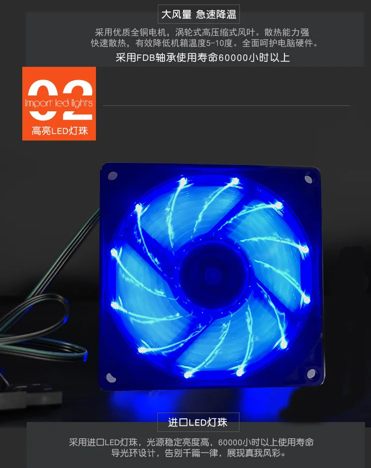 2.Alto volumen de aire.Reduzca eficazmente la temperatura de la computadora.