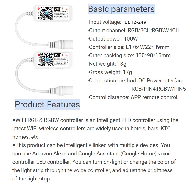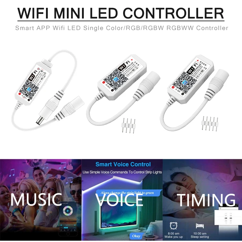 Controlador de atenuación Wifi LED inteligente RGB RGBW aplicación móvil compatible con sincronización música Control de modo de voz para 5050 3825 etc.Barra de luz de color