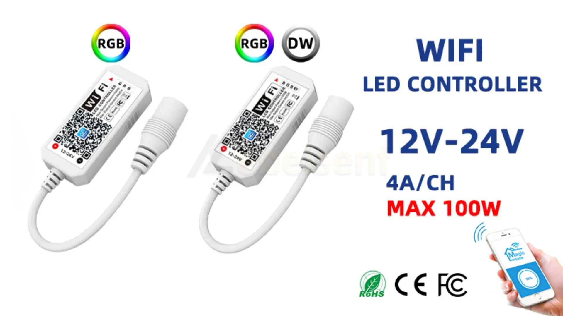 10.Adecuado para tiras LED RGB de color de 12-24 V, paneles de luces u otras luces LED.