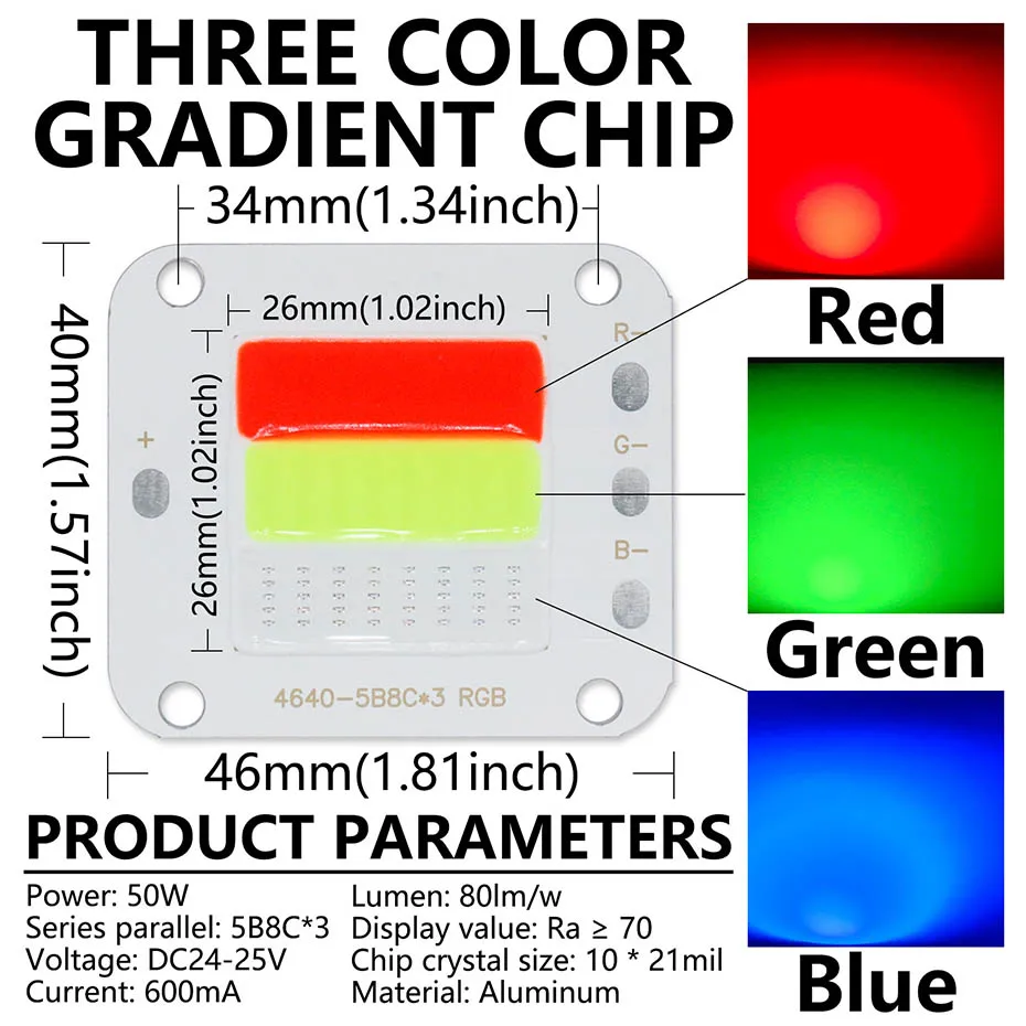 Potencia: 50W (luz azul 15w/luz roja 15w/luz verde 15w)