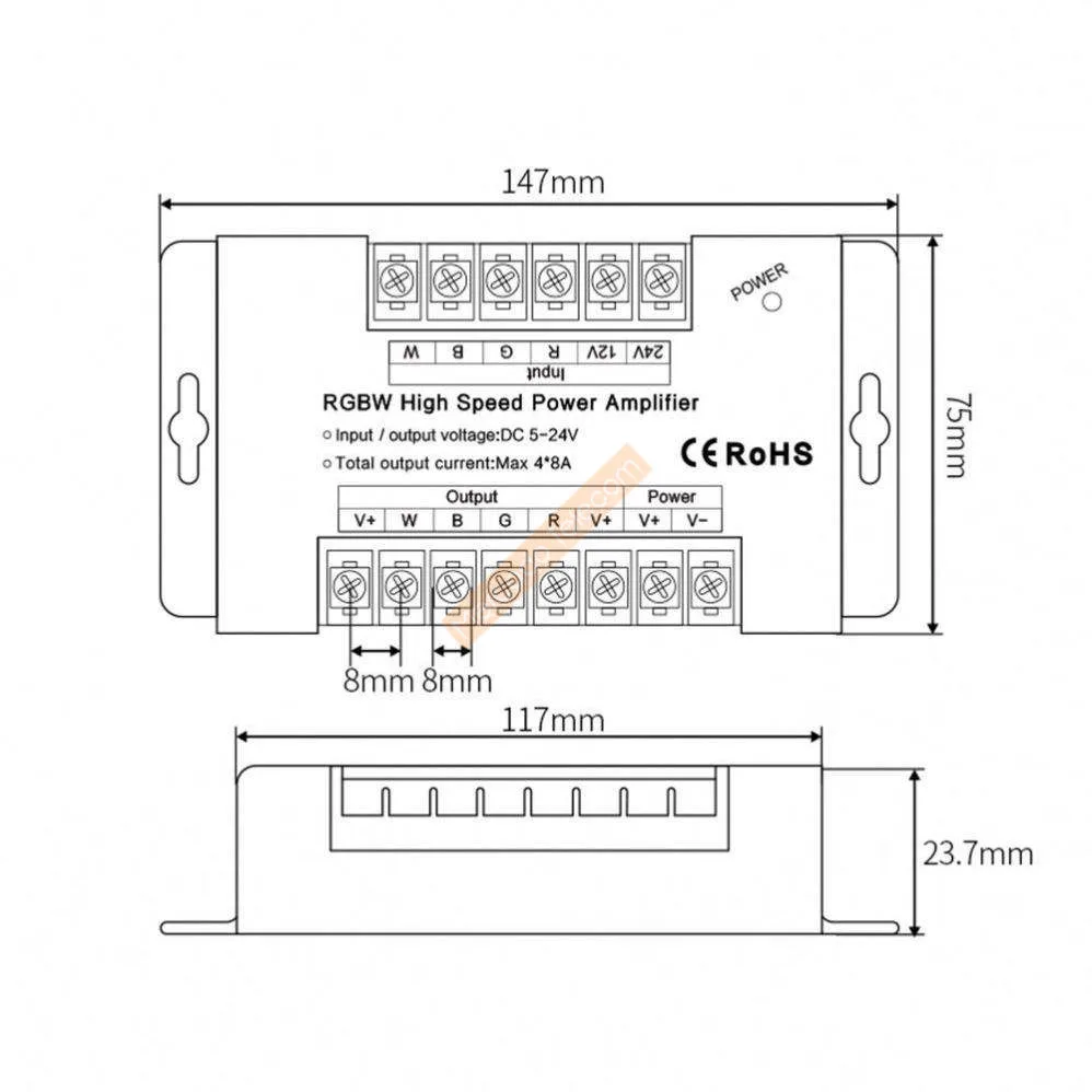 Nombre del producto: Amplificador RGBCCT de aluminio.