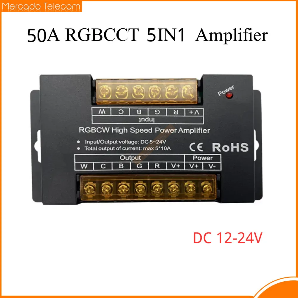 Este amplificador de 5 canales es adecuado para todo tipo de controladores LED dim cct rgbw rgbcct de voltaje constante.