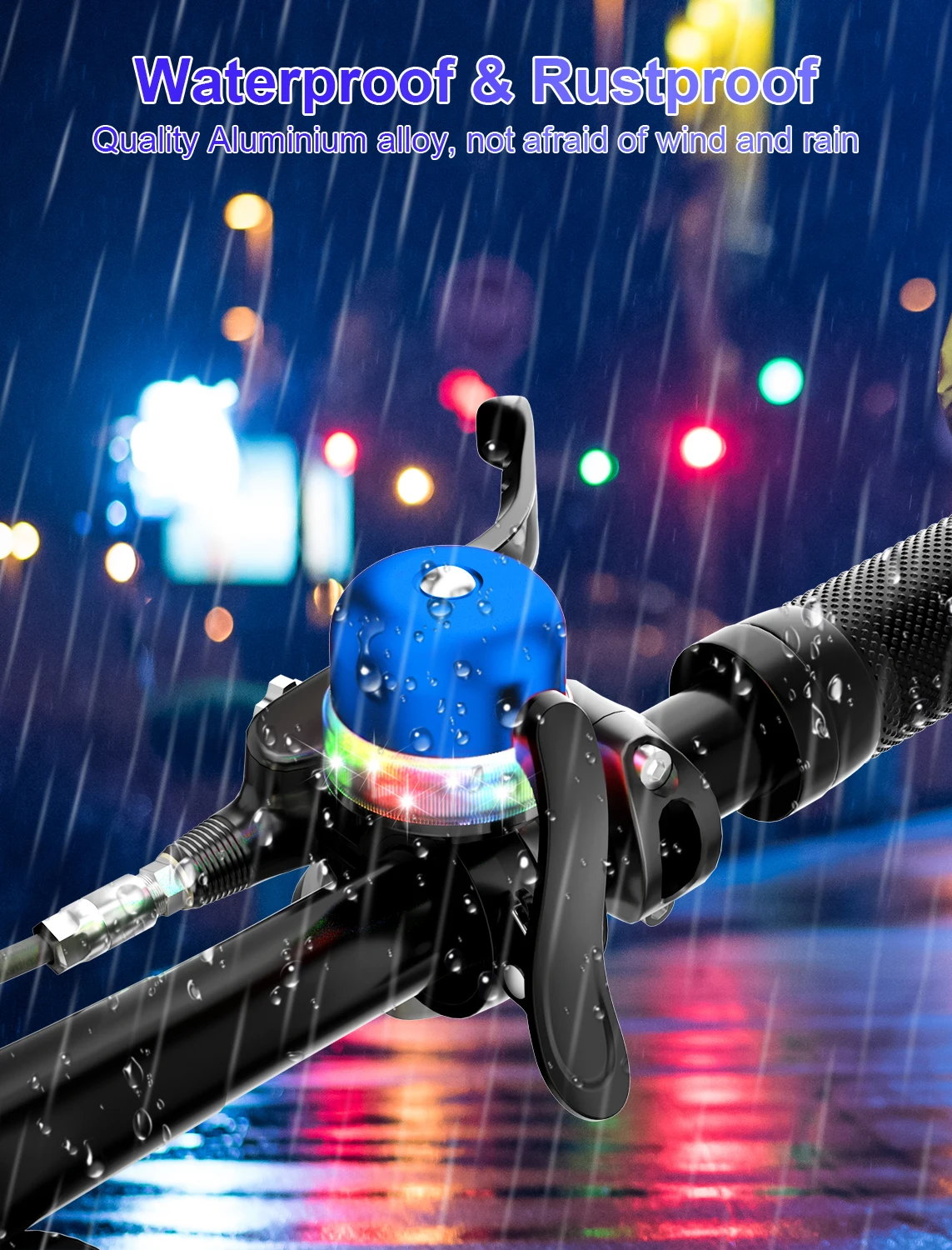 RGEEK-timbre de bicicleta LED recargable, aleación de aluminio, alarma de advertencia de seguridad para bicicleta de montaña, timbre para manillar de ciclismo, bocina para bicicleta