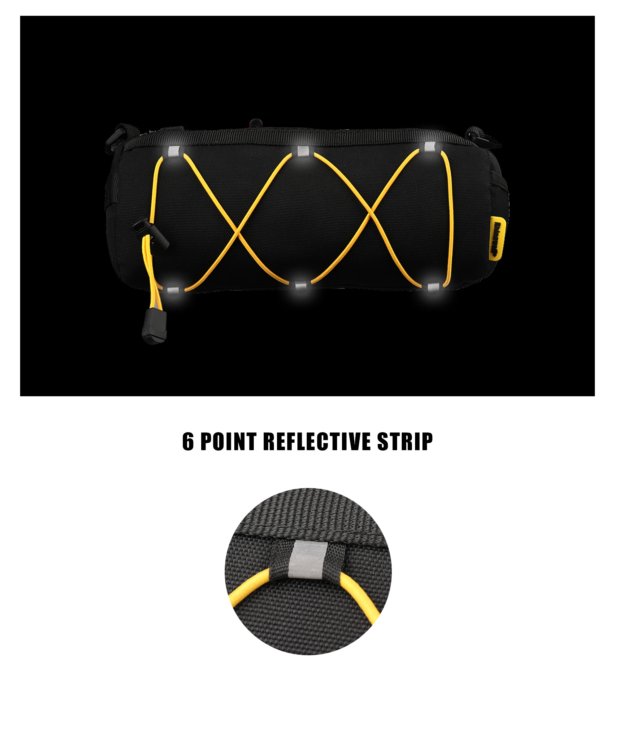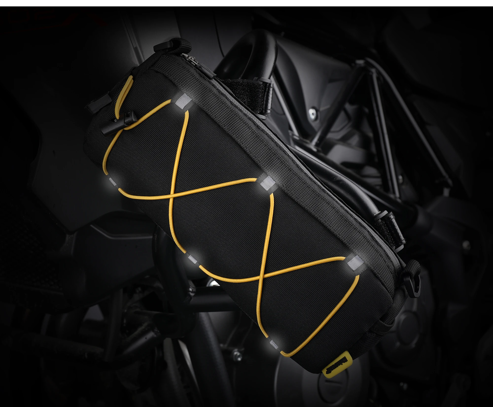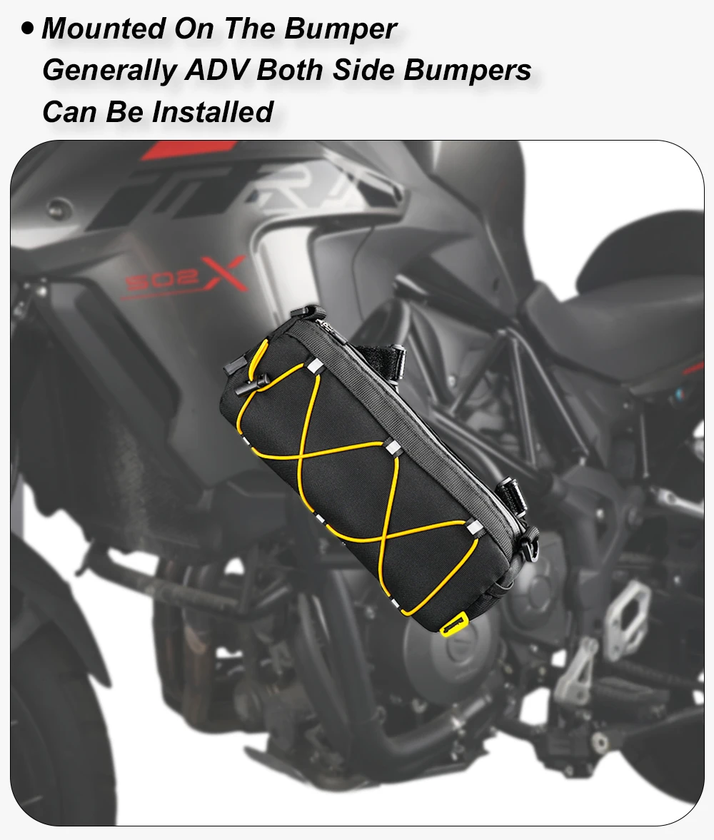 【Gran capacidad】 Tiene una capacidad de aproximadamente 2,4 L, puede almacenar teléfonos móviles, carteras, llaves, herramientas de reparación, guantes, etc. El diseño de la cremallera horizontal superior es conveniente para llevar artículos durante la conducción. La correa elástica frontal puede colgar la ropa mojada.