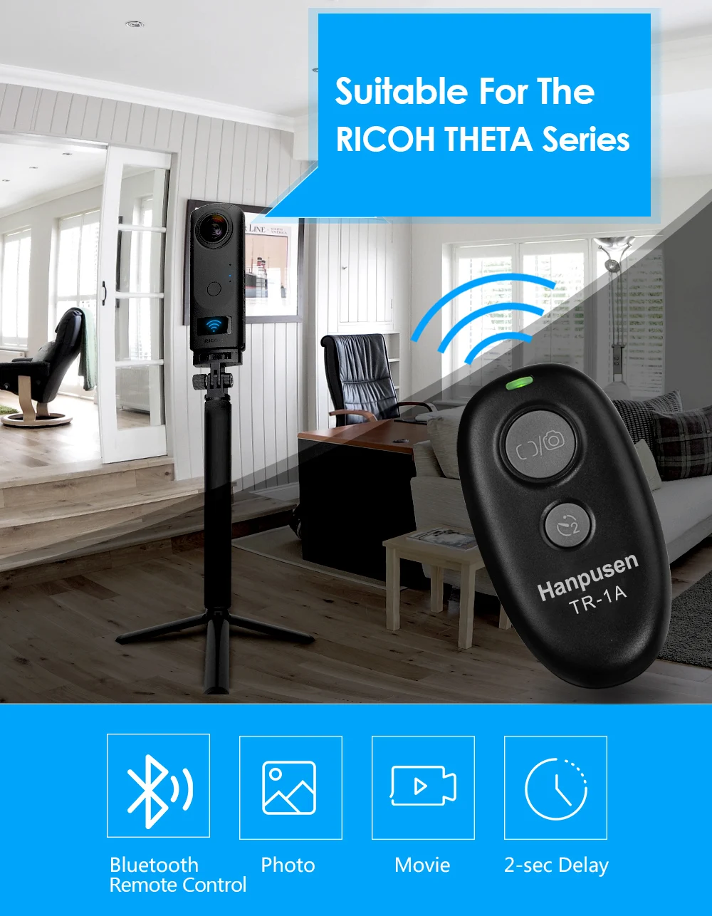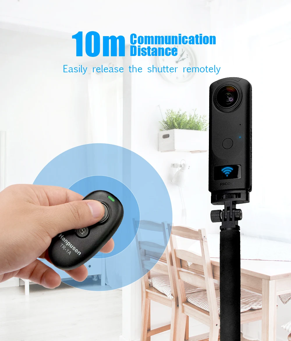 Disparador de control remoto inalámbrico HANPUSEN para la serie RICOH THETA (THETA SC2, Z1, V ).
