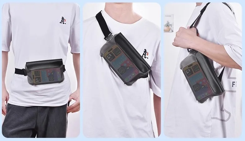 La bolsa cruzada impermeable tiene una gran capacidad de almacenamiento: puede contener muchas cosas, no solo su teléfono inteligente, sino que también puede almacenar dinero en efectivo, tarjetas de crédito, billetera y llaves del auto, etc.(Si atrapa el aire en la bolsa impermeable, flotará)