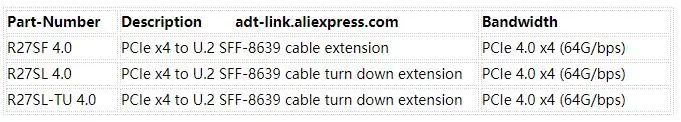 Cable de extensión adt-link PCI express 4,0x4 a U.2 SFF-8639
