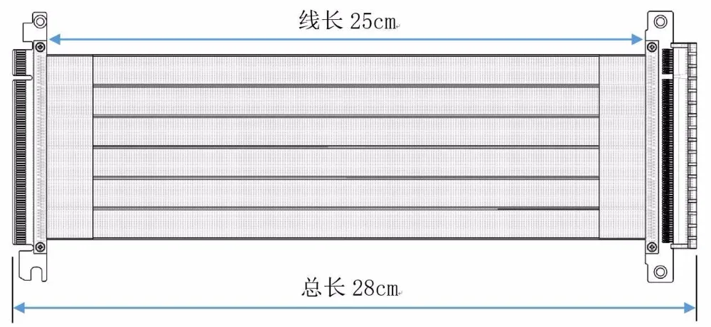 [Especificación]Velocidad máxima: PCIe Gen3 8Gbps. Bidireccional 32,0 GB/seg (256Gpbs , 256GT/seg) para PCIe x16, 2,0 GB/seg (16Gpbs , 16GT/seg) por carril PCIe, PCIe Gen2 (5Gbps) compatible con PCIe Gen1 (2,5 Gbps).Conector de cabecera (macho): PCIe X4Conector de receptáculo (hembra): PCIe x16Cable: Longitud: Estándar (015)=15cm (6 pulgadas), Personalizado para 1 ~ 999cm (001 ~ 999)* Guía: PCIe Gen3 8Gbps máximo 24 pulgadas (60cm)Tipo de cable: plano, doble axial, grosor=1,4mm (1/16 pulgadas) ancho=54mm (9mm * 6, 2 1/8 pulgadas)Blindaje EMI con polímero conductorColor: negroTipo de conector: recto (SF), ángulo recto (SR), ángulo izquierdo (SL), borde doble (SS), conector doble (FF/LR)
