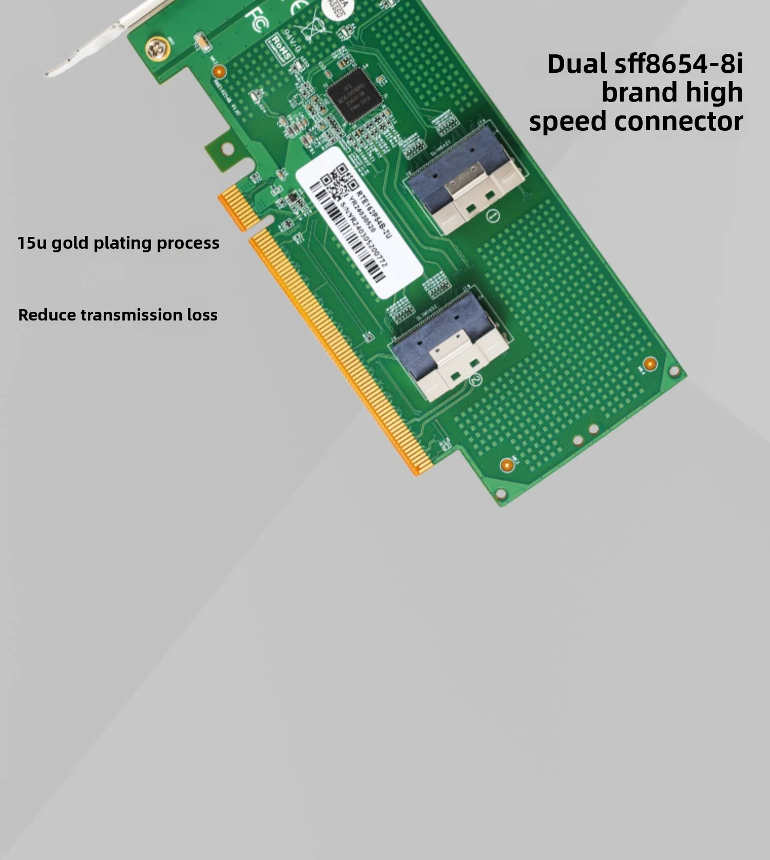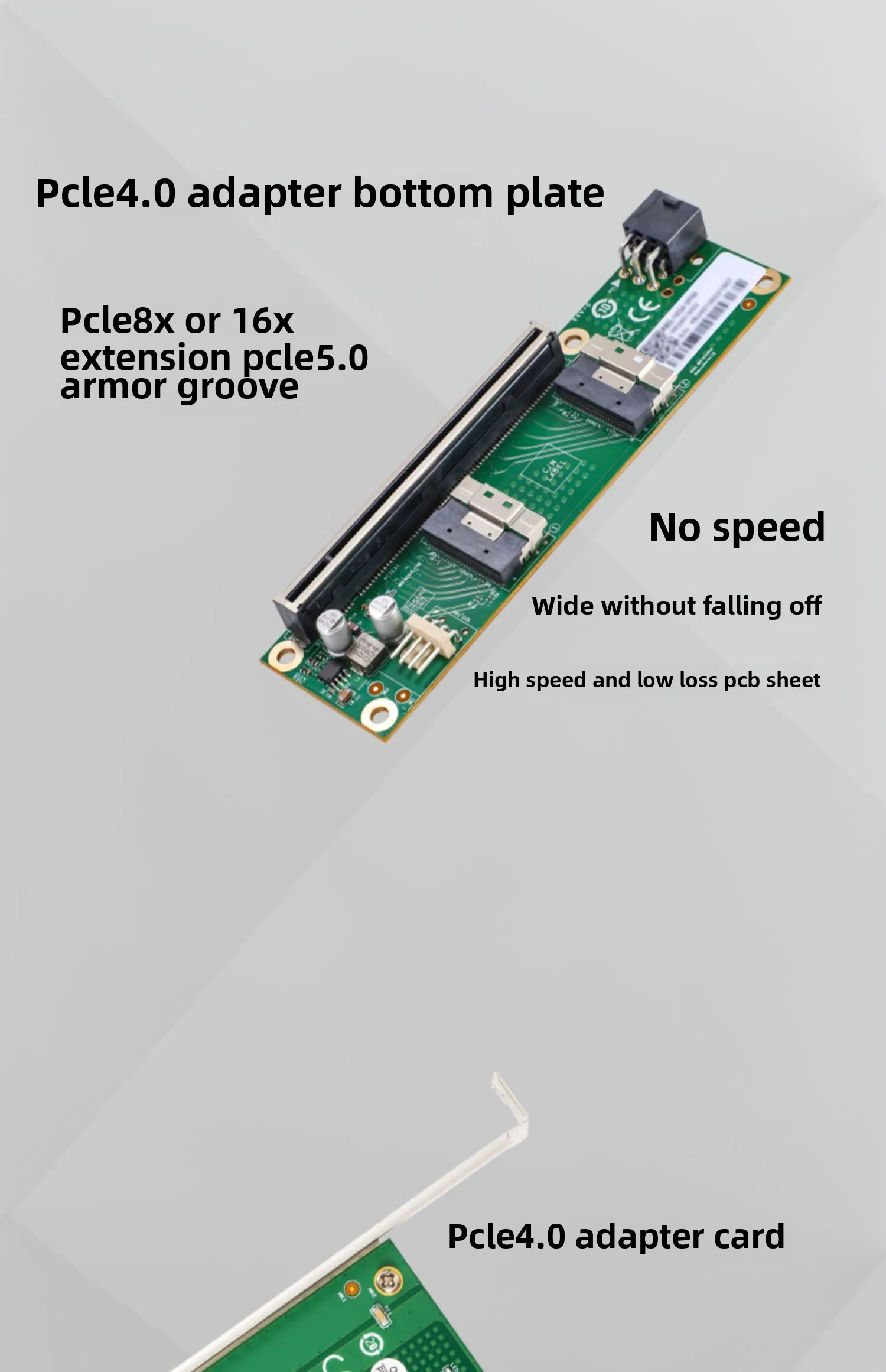 Riser PCIe 5,0 4,0 16x a SlimSAS SFF-8654 placa base MCIO tarjeta dividida GPU tarjeta gráfica, externa, Cable adaptador de expansión