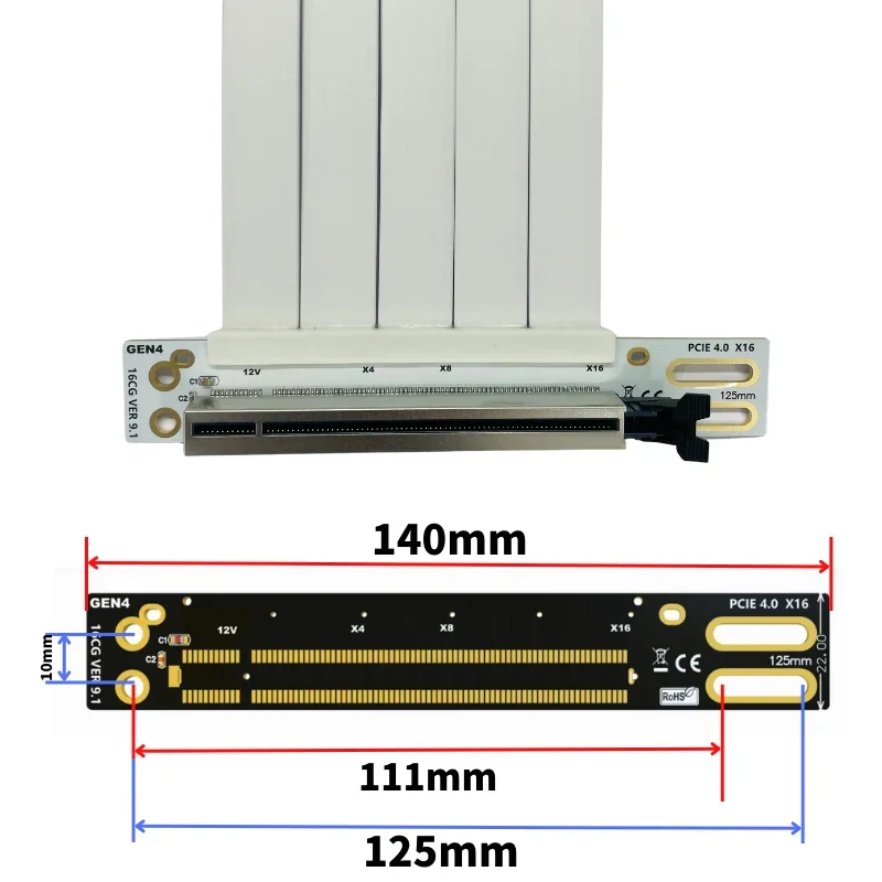 Comprar Riser-soporte Vertical para tarjeta gráfica pci-express X16 4,0 ATX, Kit de soporte GPU + PCIE 4,0 16X GEN4, cable extensor de silicona