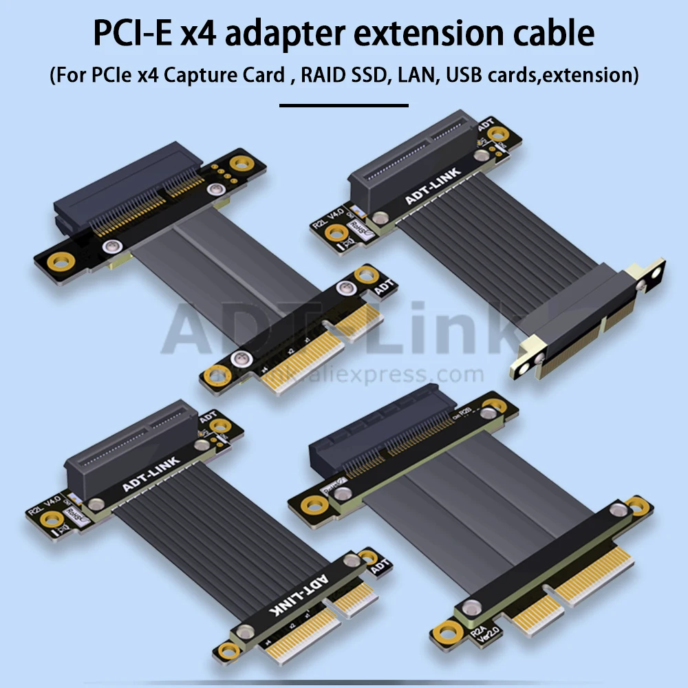 Comprar Riser-Tarjeta PCIE 4,0 3,0x4, cable de extensión de codo macho a hembra, PCI Express 4x Gen4, tarjeta gráfica SSD, extensor de cinta RAID