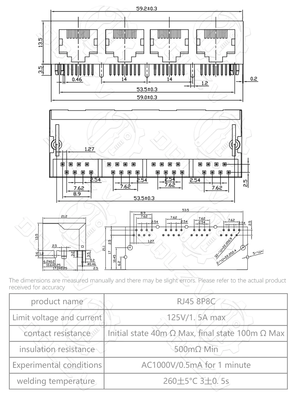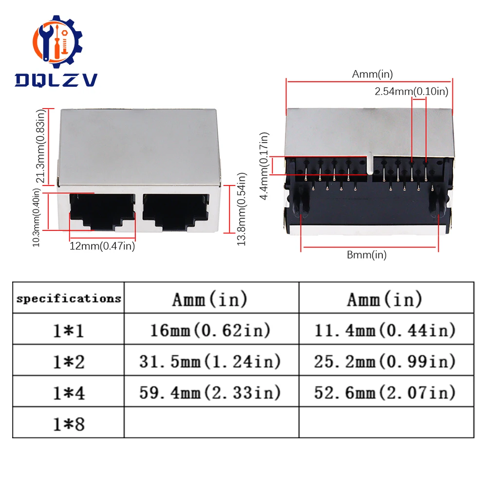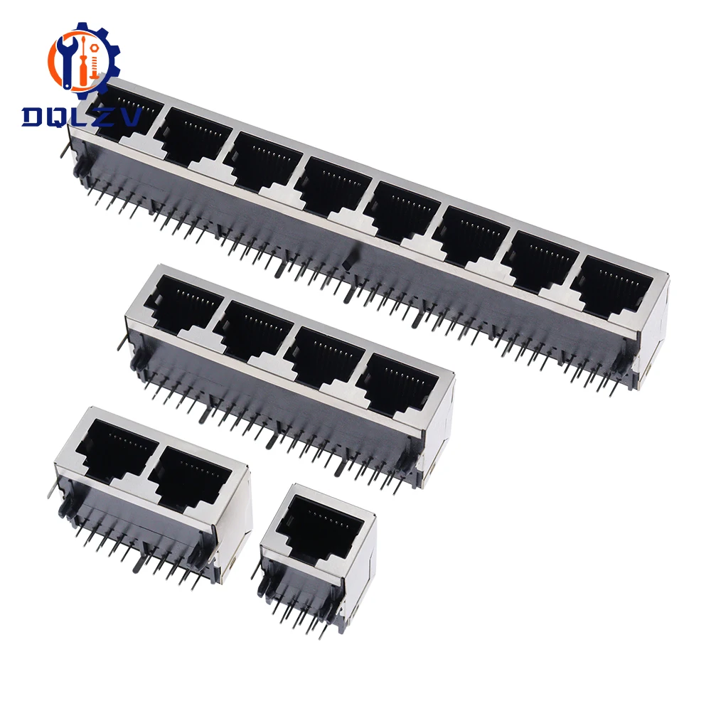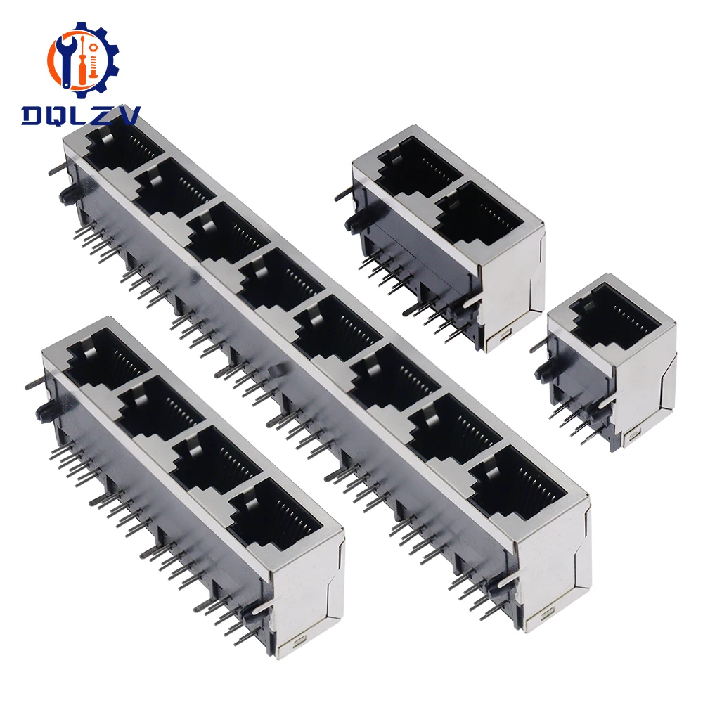 Comprar RJ45 1 2 4 6 8 puertos blindados modulares 21MM PCB Jack 8P8C ángulo recto agujero pasante conector de red Pcb