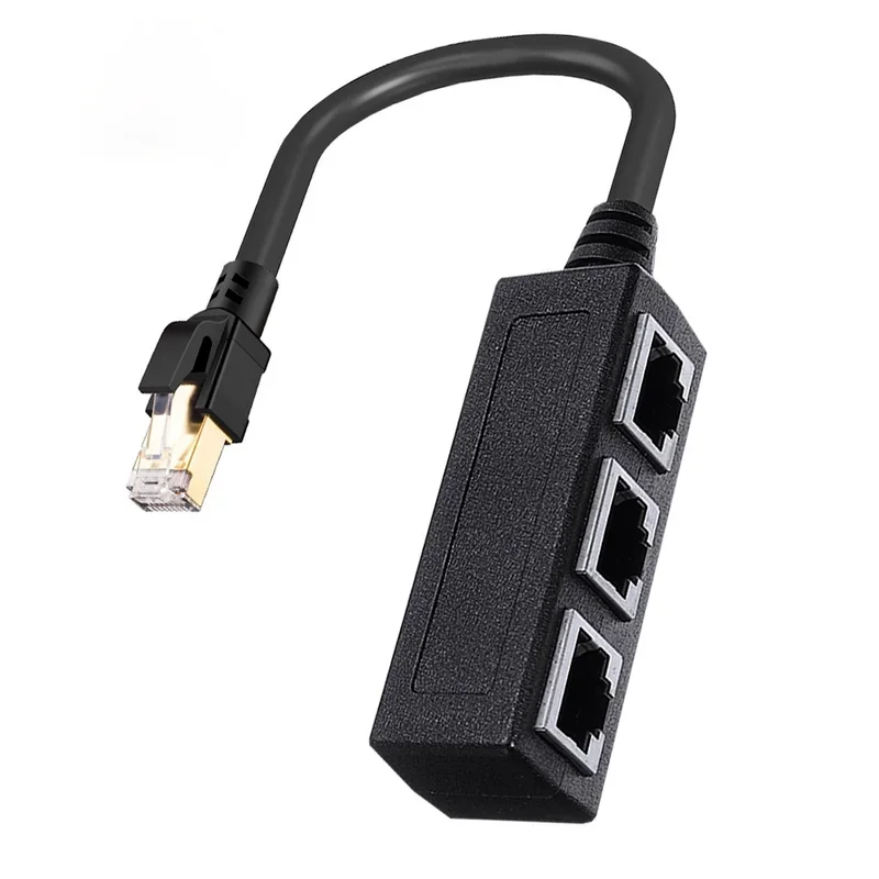 RJ45 1 macho a 3 puertos hembra enchufe de red Ethernet Cable divisor adaptador de extensión conector macho a hembra para concentradores de enrutadores descripción del producto Permita que 3 computadoras compartan DSL, módem por cable u otros puertos Ethernet.Compatible con cable Ethernet de red Cat8 Cat 7 Cat6 Cat5 Cat5e. Súper compatible: Compatible con ADSL, concentradores, conmutadores, televisores, decodificadores, enrutadores, dispositivos inalámbricos y computadoras.