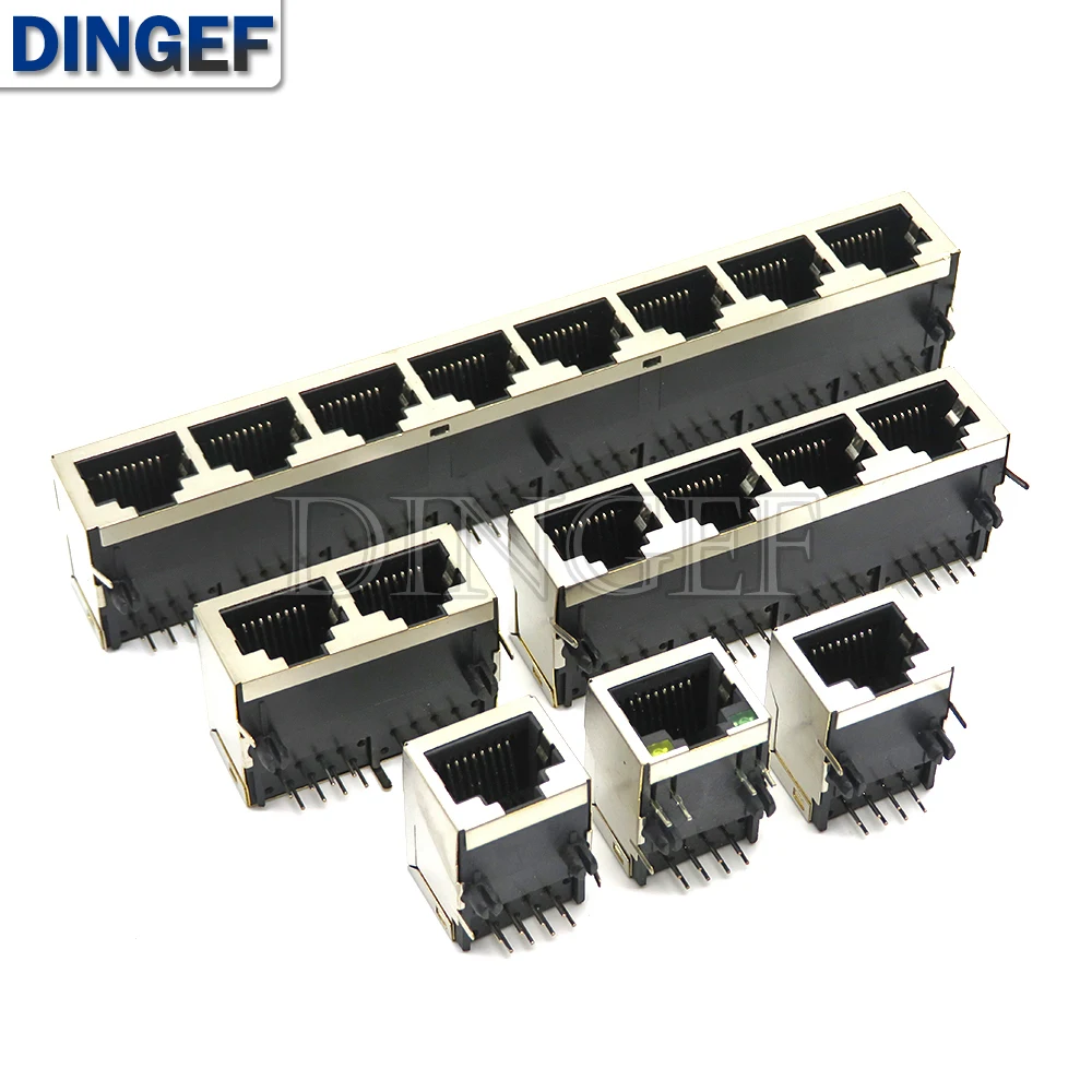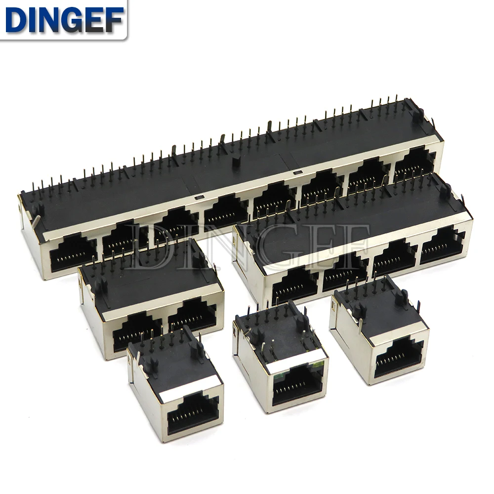 Comprar RJ45 59 conector Jack de placa de ángulo recto PCB hembra de Metal 8P8C enchufe de cabeza de cristal interfaz de red de 21mm cuerpos largos