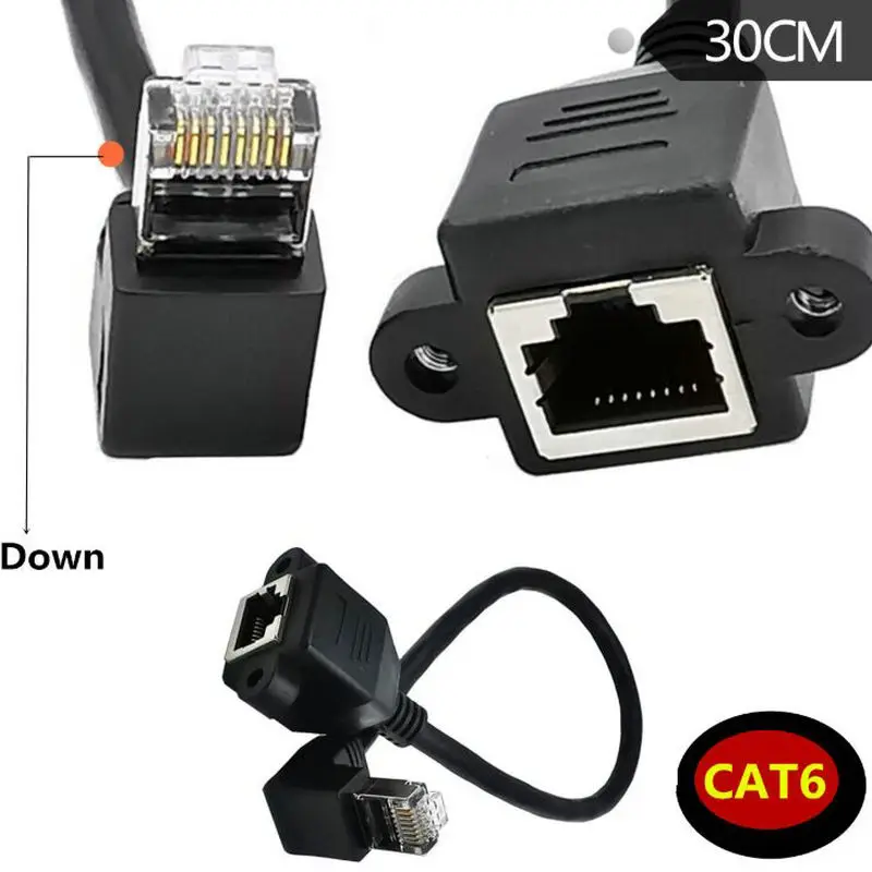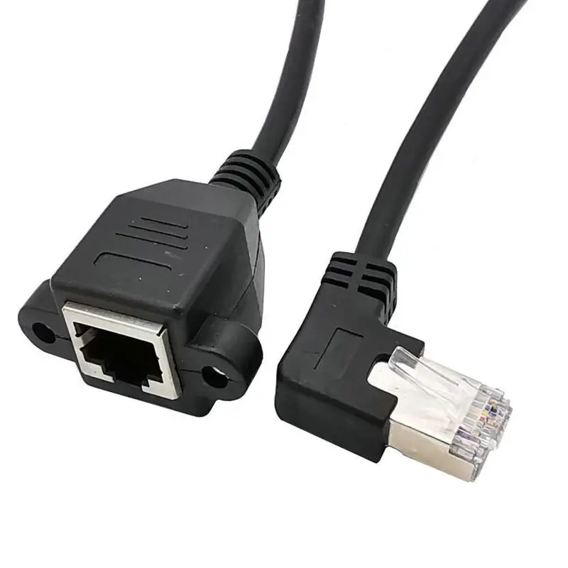 Comprar RJ45 Cat6 8P8C FTP STP UTP Cat6e macho a hembra montaje en Panel en ángulo de 90 grados Cable de red Ethernet LAN 0,3 m