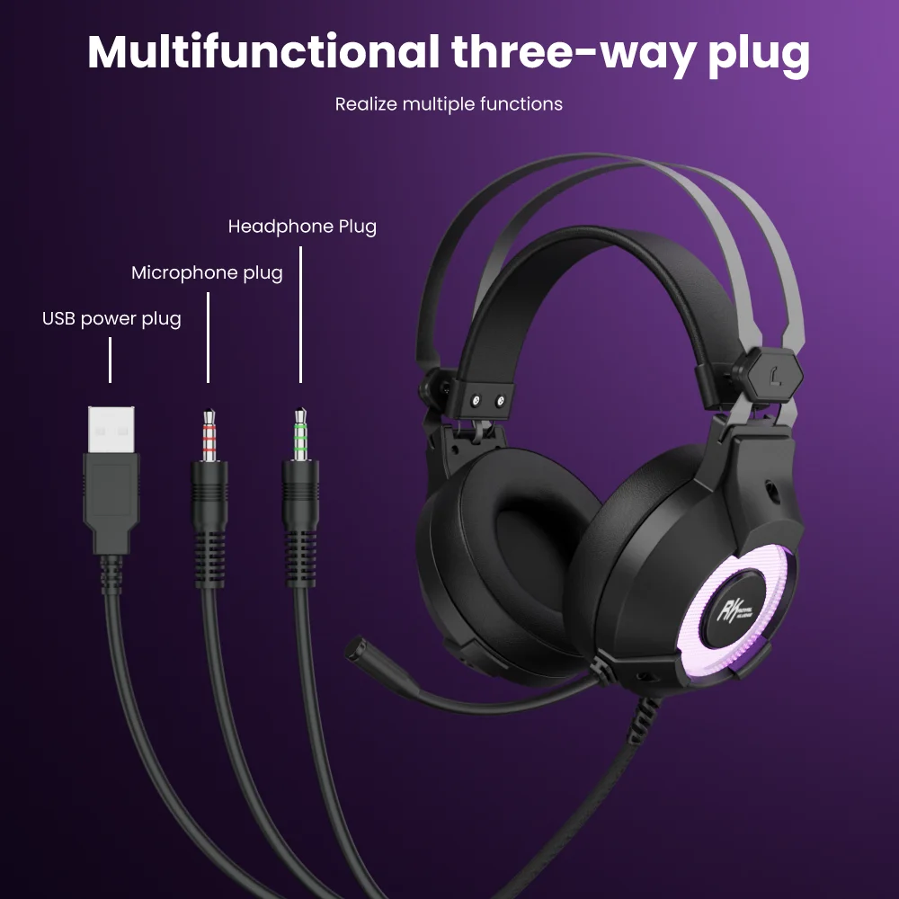 5.El diseño de enchufe de tres vías único (audio, micrófono, fuente de alimentación USB) compatible multifuncional es perfectamente compatible con varias plataformas como PC, etc., y garantiza un efecto de iluminación estable.