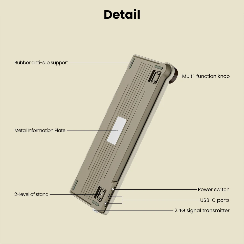 2.TRES MODOS: este teclado admite 3 modos de conexión, incluido el modo cableado USB-C, el modo inalámbrico 2.4G y el modo Bluetooth 5.1.Se pueden conectar hasta 3 dispositivos a través de Bluetooth al mismo tiempo y se pueden cambiar fácilmente mediante la perilla.Compatible con sistema dual Win/Mac, uso ilimitado.