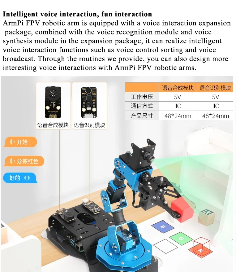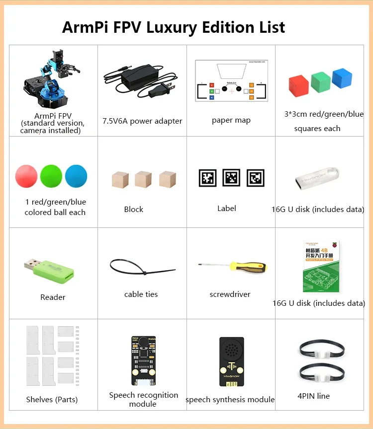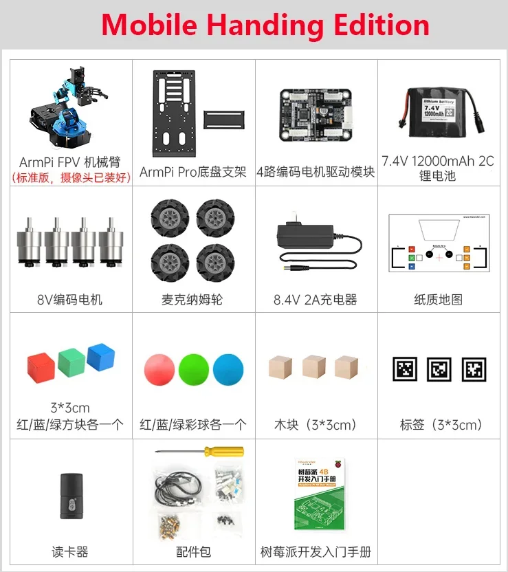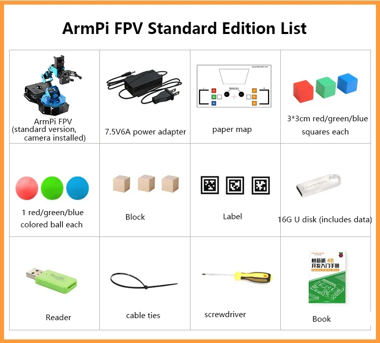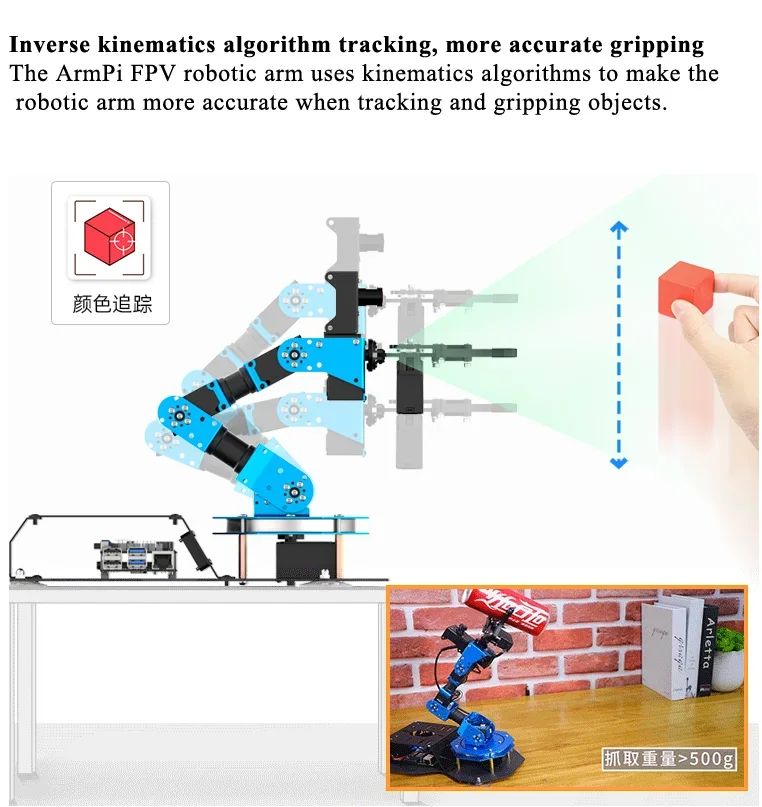 A-rmPi-FPV ROS Manipulador robótico A-rm Raspberry Pi AI Reconocimiento visual Kit de robot de programación Python de código abierto