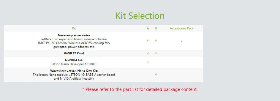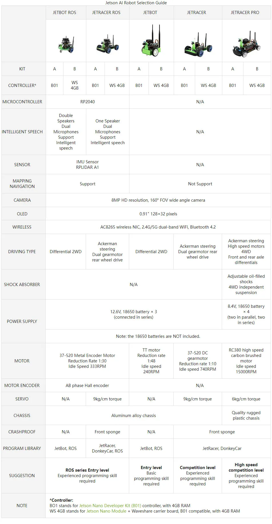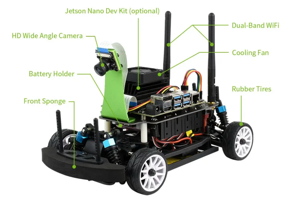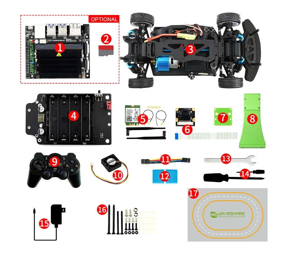 JetRacerAcce No Nano no incluye tarjeta Nano ni TF, mientras que el kit JetRacer Pro AI lo incluye.