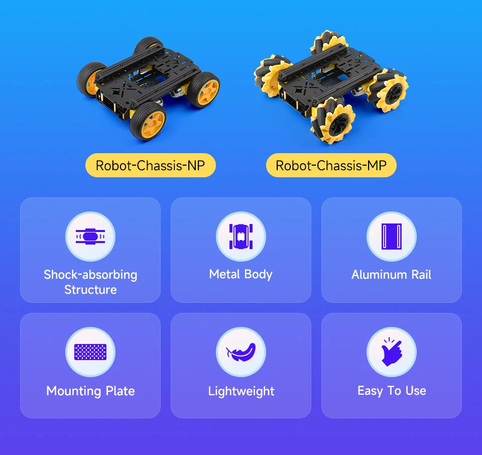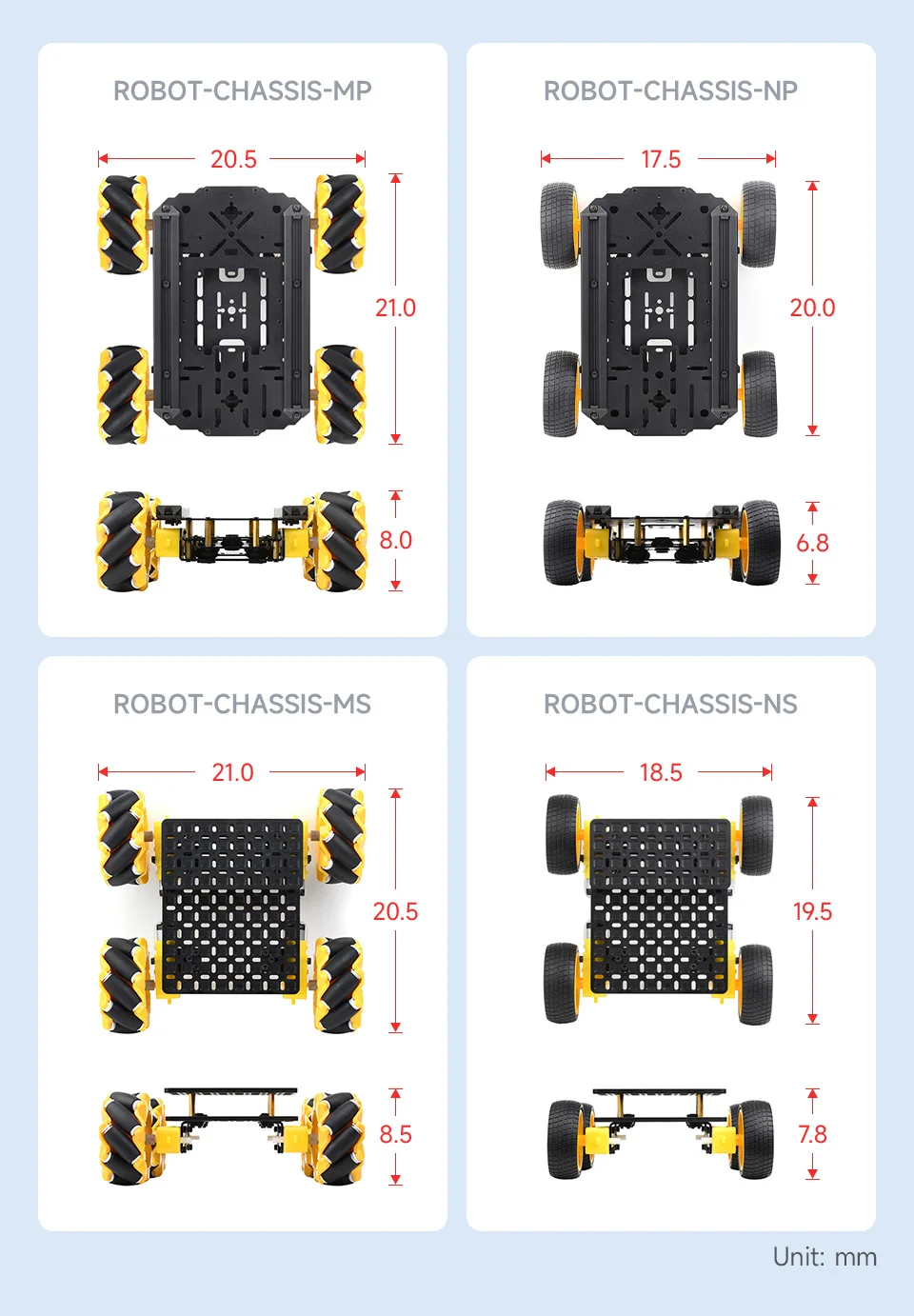 Four-Wheel Drive Provides Stronger Power And Stability, And Normal Wheels Can Also Be Replaced With Mechanum Wheels For More Flexible Maneuverability