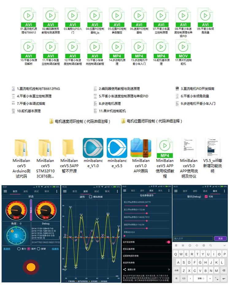 1. Support gravity induction remote control and two-hand button remote control mode. 2. Support 5-channel waveform display interface, you can view waveform at any time without data line. 3. Support 9-channel parameter adjustment interface, support PID parameteronline adjustment and power down saving. 4. Optimize the electric quantity alarm mechanism, APP accuratelypushes low voltage alarm notification to avoid over-discharge of batteries. 5. Support BLE Bluetooth 4.0 module. 6. Support the latest version of Android system.