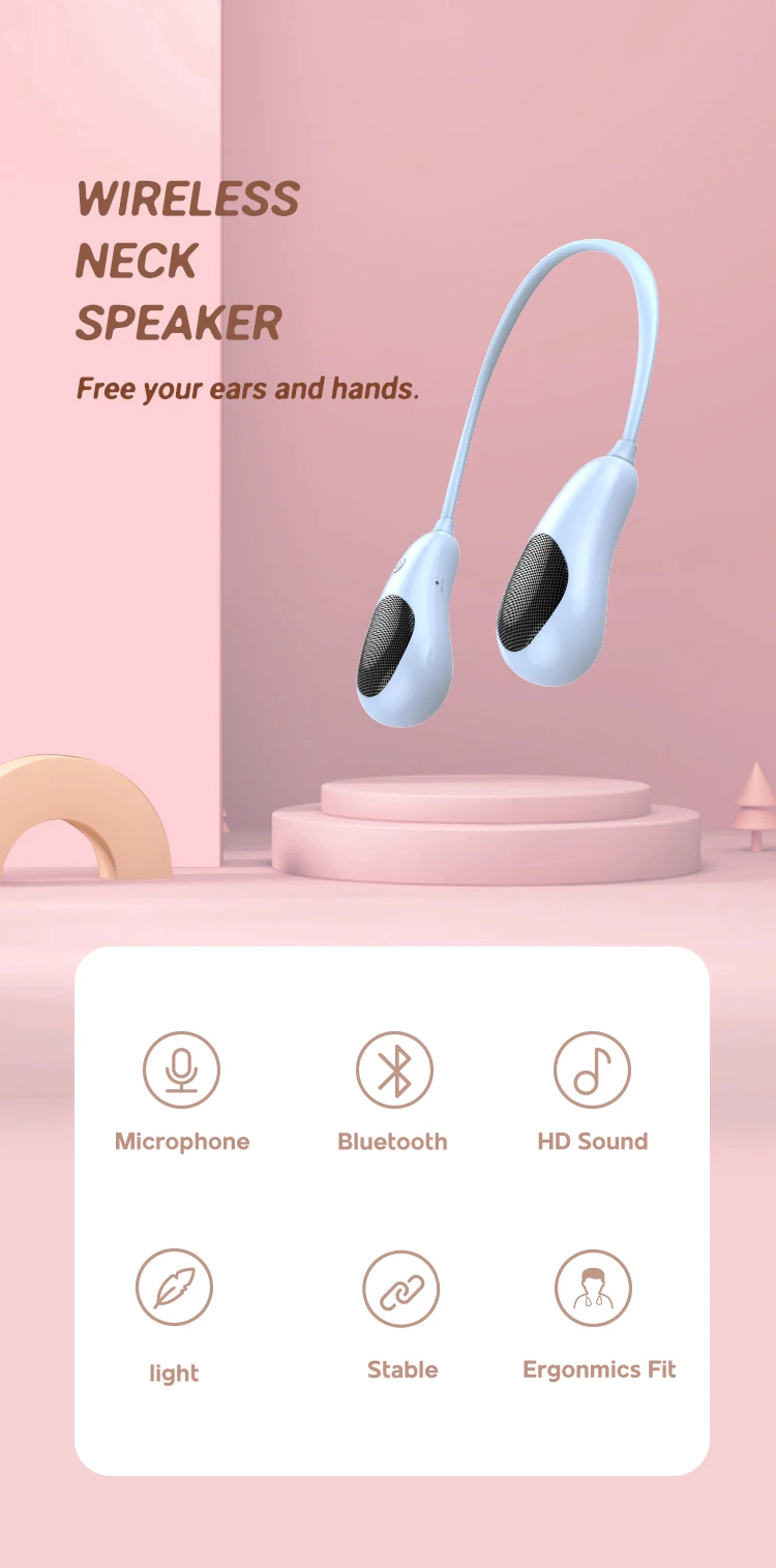 Rockmia altavoz de cuello EBS-907 Mini altavoz estéreo inalámbrico portátil Bluetooth 5,0 manos y orejas libres U Sharp reproductor de música Box
