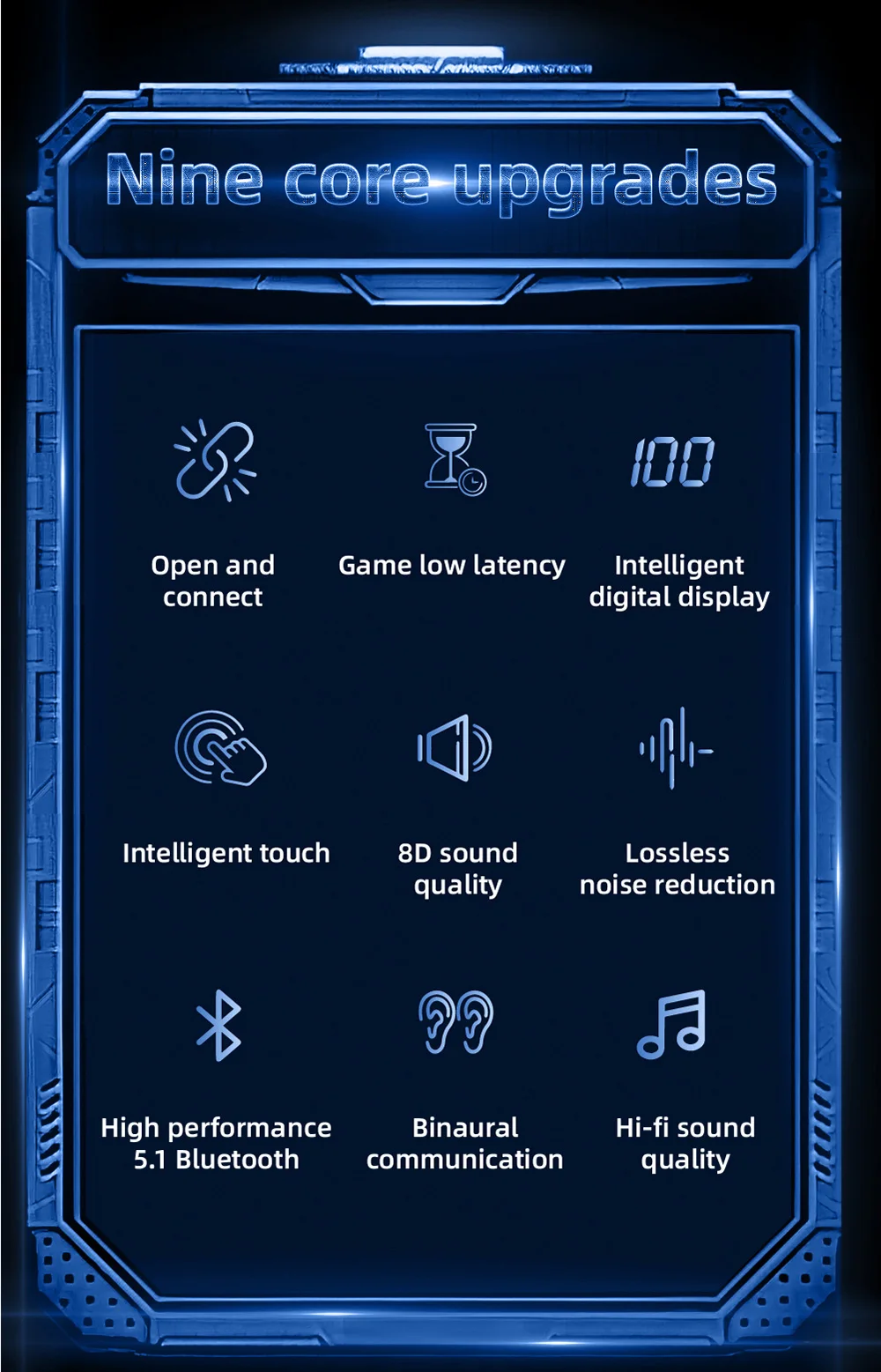 Auriculares G9S TWS para juegos ETE-73 Rockmia Bluetooth 5,0, miniauriculares inalámbricos, graves pesados, sonido profundo, pantalla Led Digital