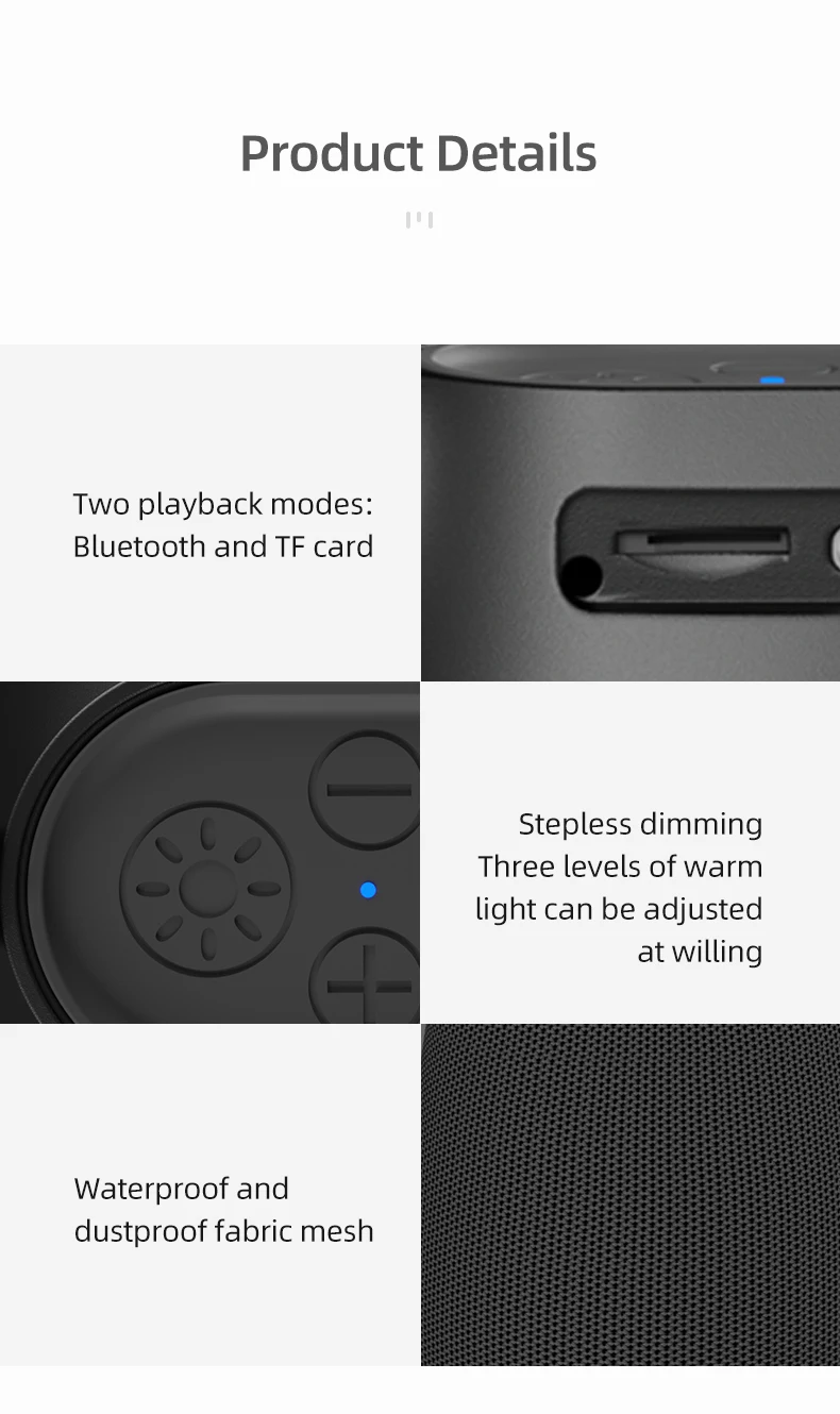 3. Luz LED incorporada, Con 3 modos de luz (Blanco/RGB/intermitente con música)