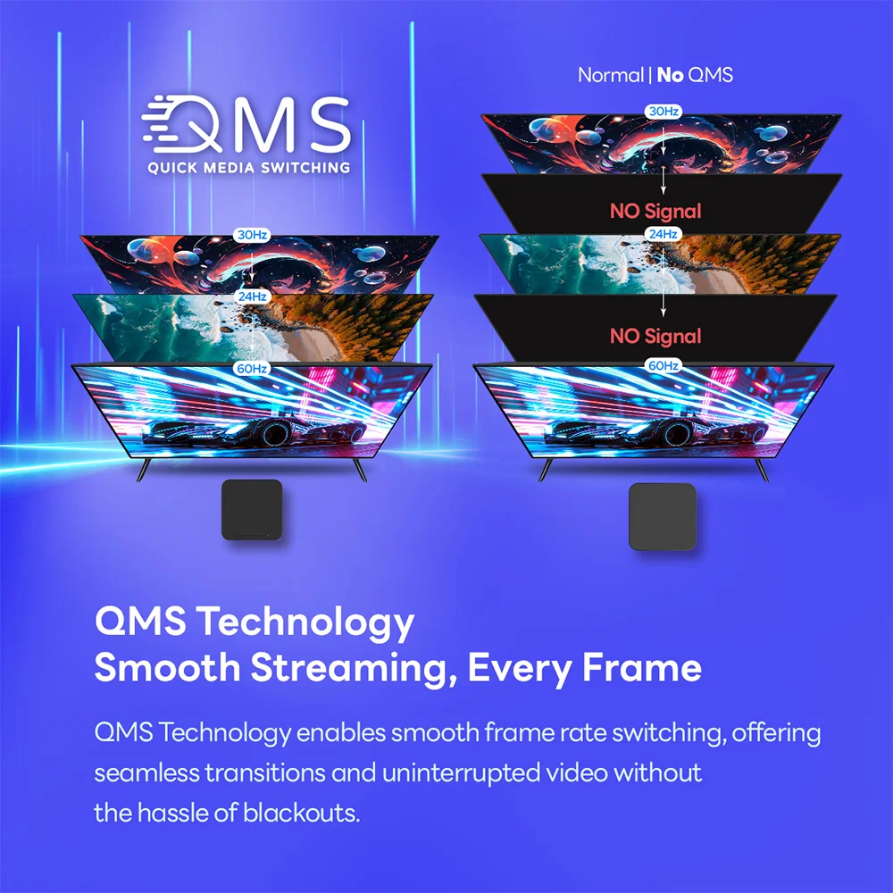 【Funciones RT-GT1】La última familia de chips RTD1325 de Realtek, compatible con WiFi 5, HD 2.1b con aplicaciones de transmisión QMS, Dolby Atmos, HDR10+, AV1 y 4K Netflix certificadas por Google.
