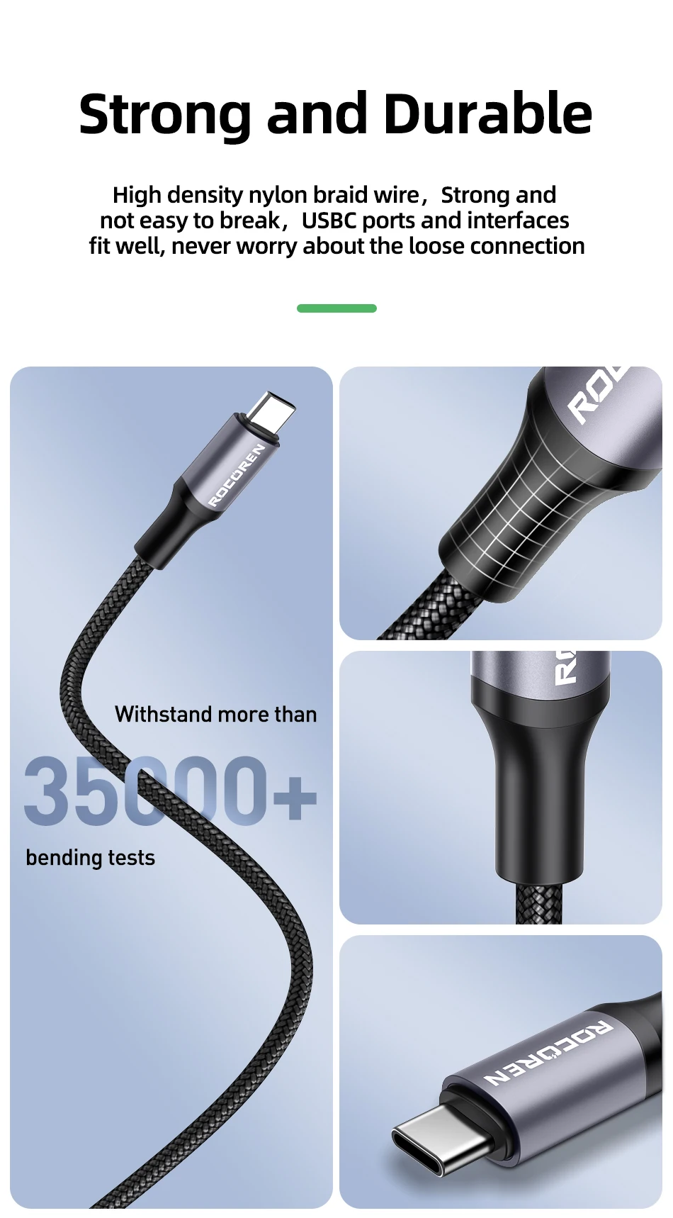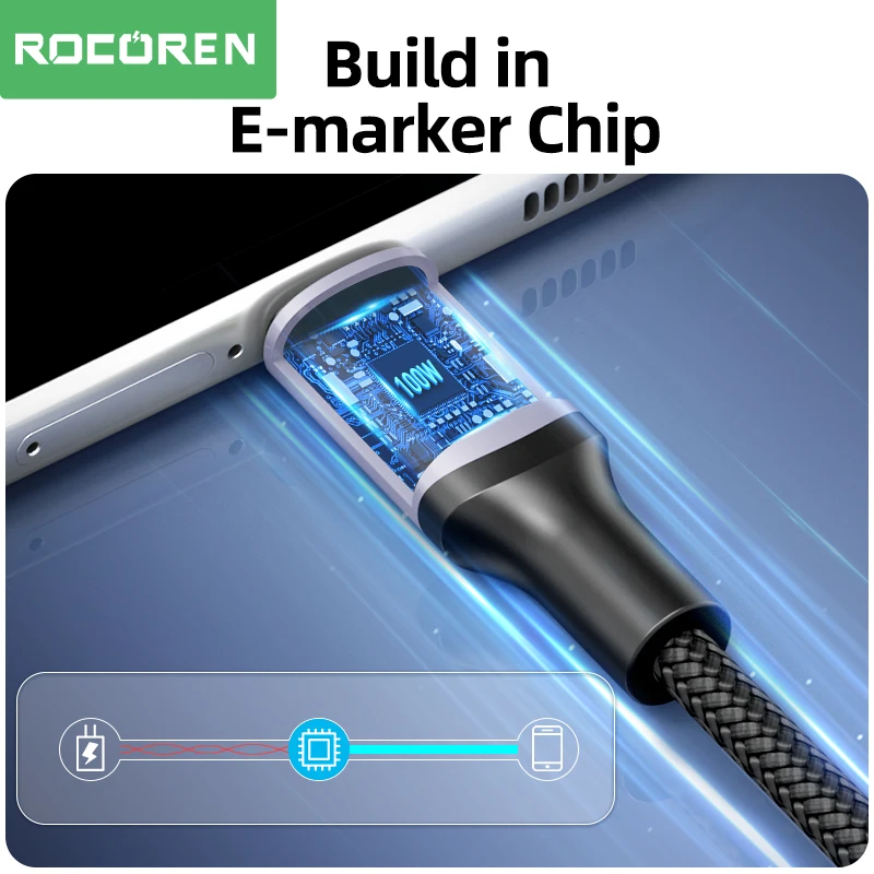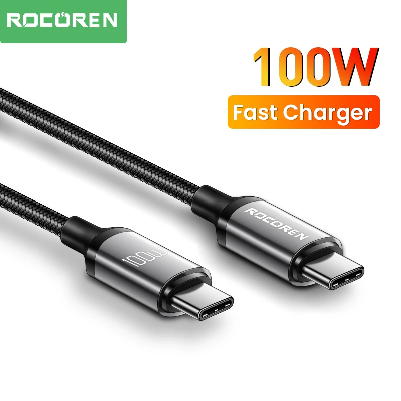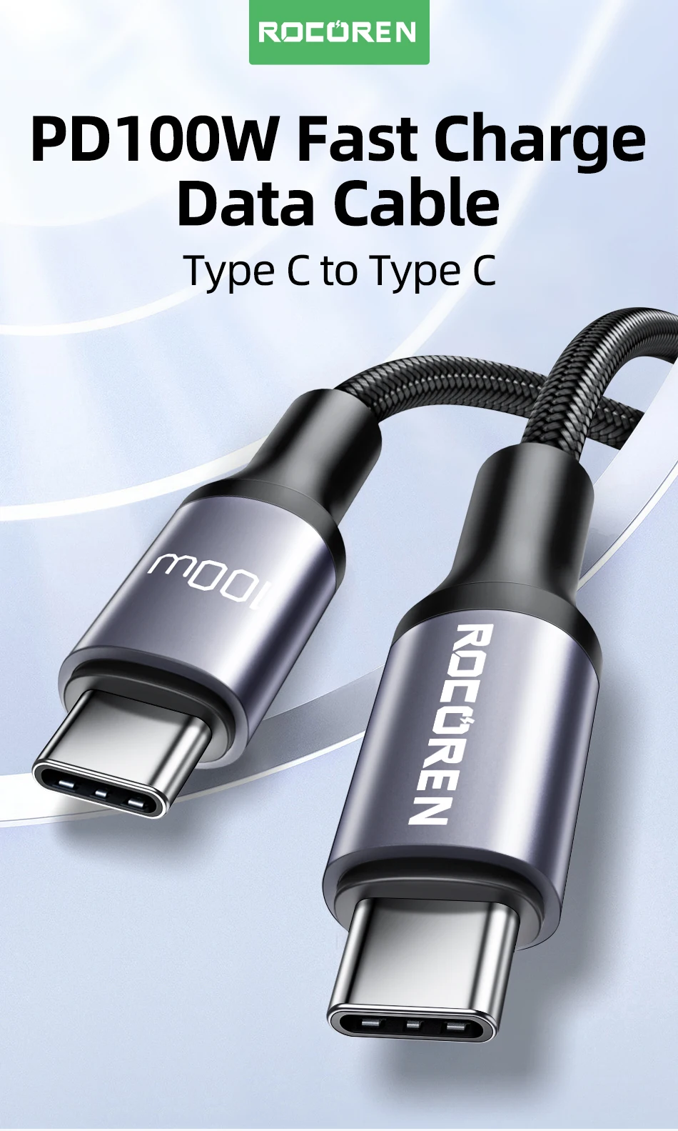 Comprar Rocoren 100W USB tipo C a USB C Cable 2m PD Cable de carga rápida para Macbook Samsung Xiaomi tipo-c Cable USBC 5A