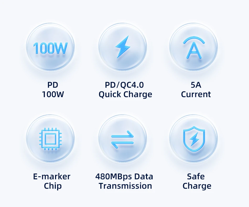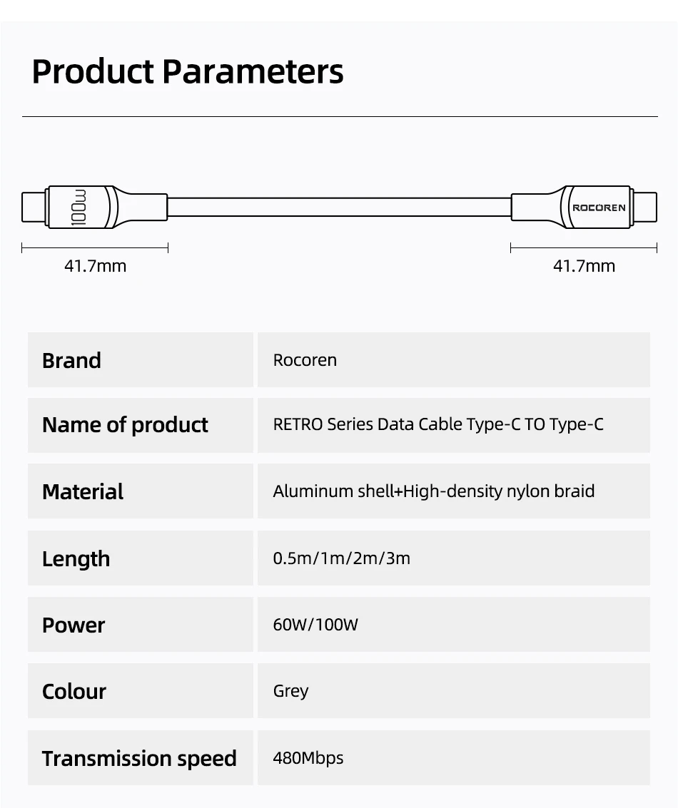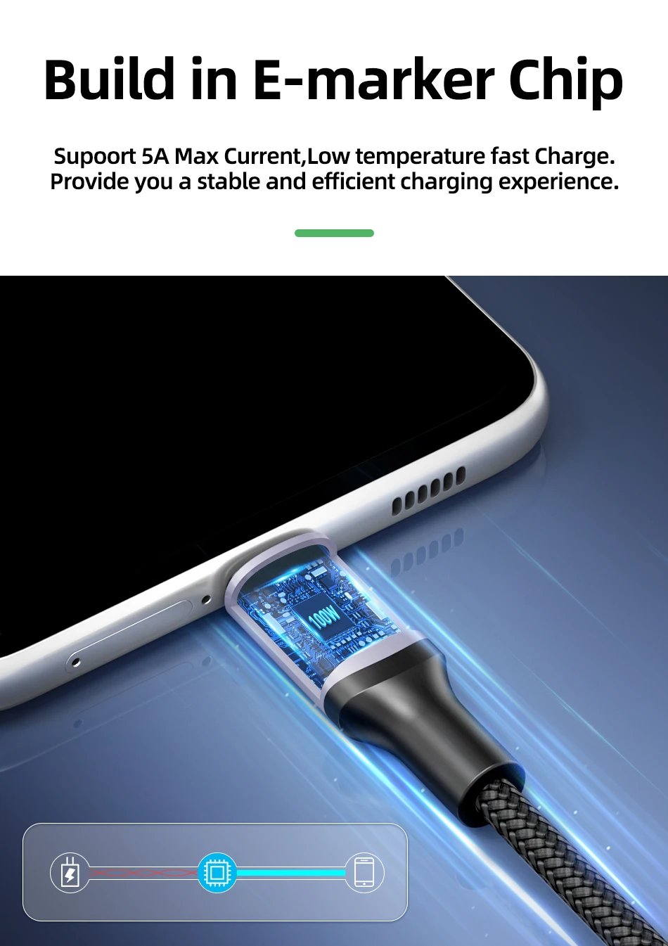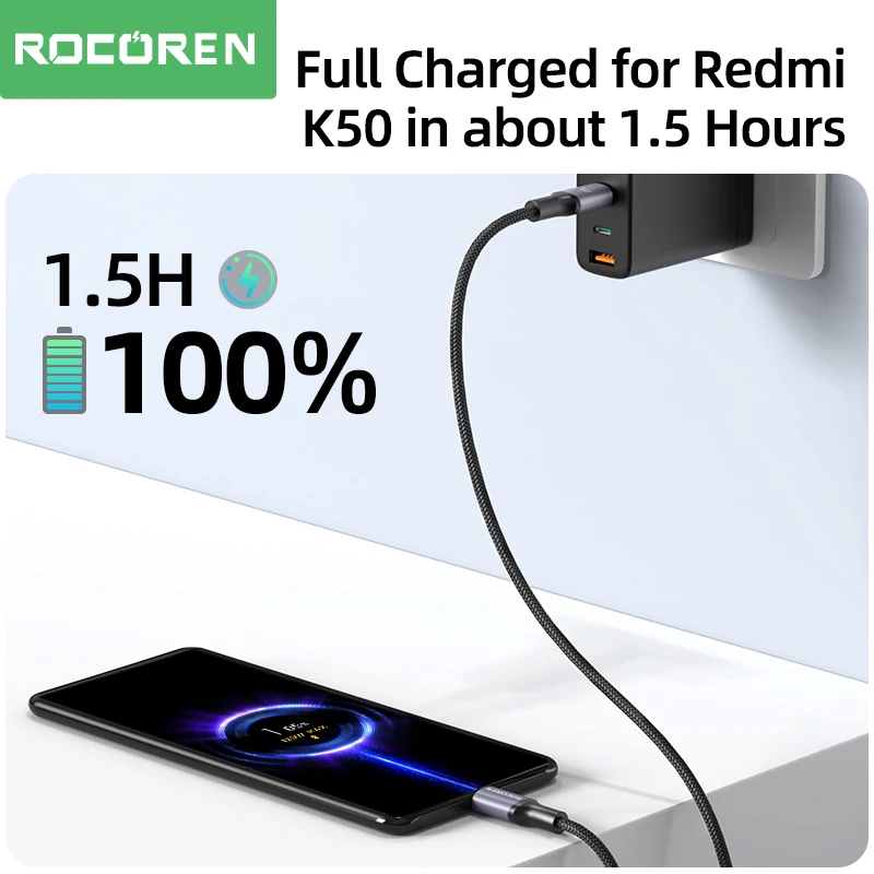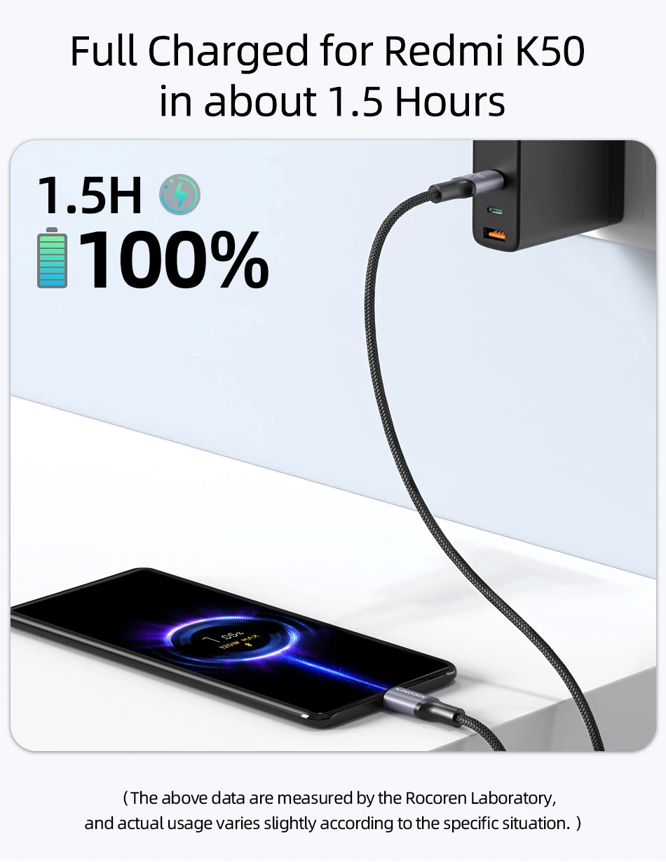 Comprar Rocoren 100W USB tipo C a USB C Cable 2m PD Cable de carga rápida para Macbook Samsung Xiaomi tipo-c Cable USBC 5A