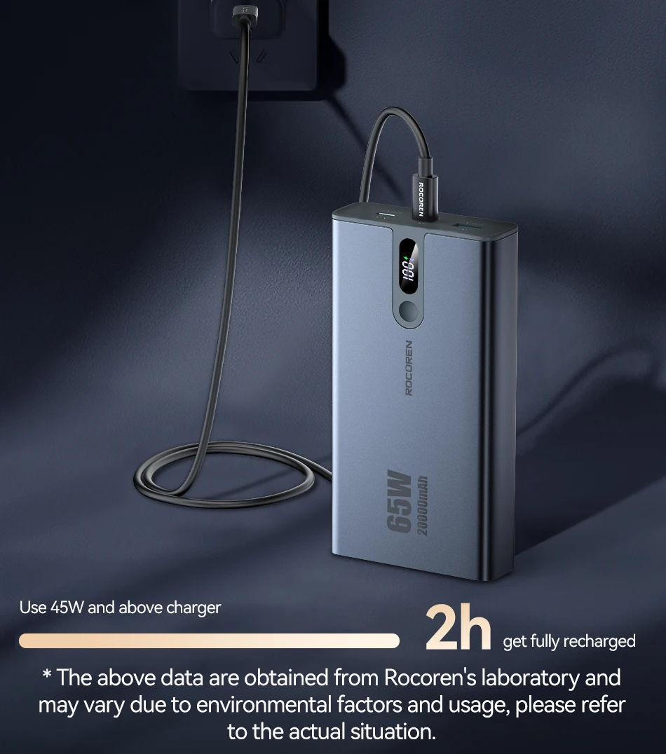 Comprar Rocoren 65W 20000mAh banco de energía cargador rápido portátil batería externa 20000 mAh Powerbank para iPhone 16 Pro Max Xiaomi MacBook