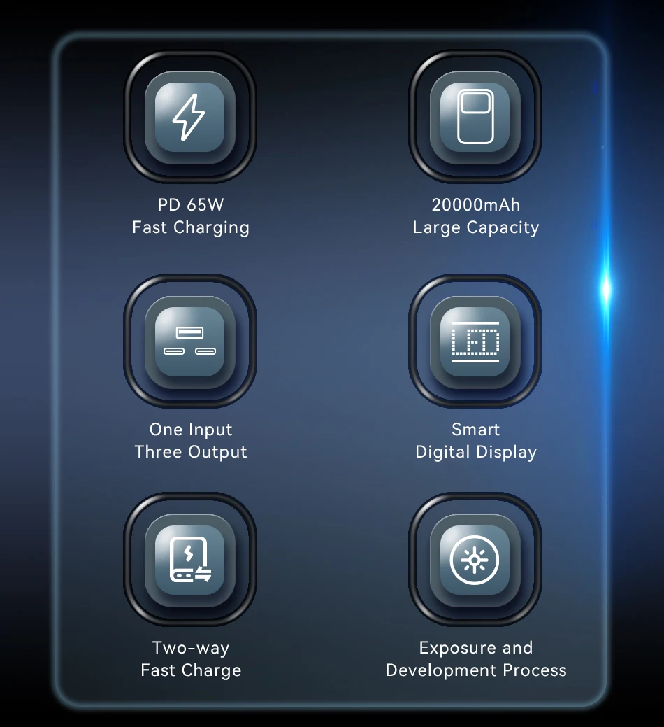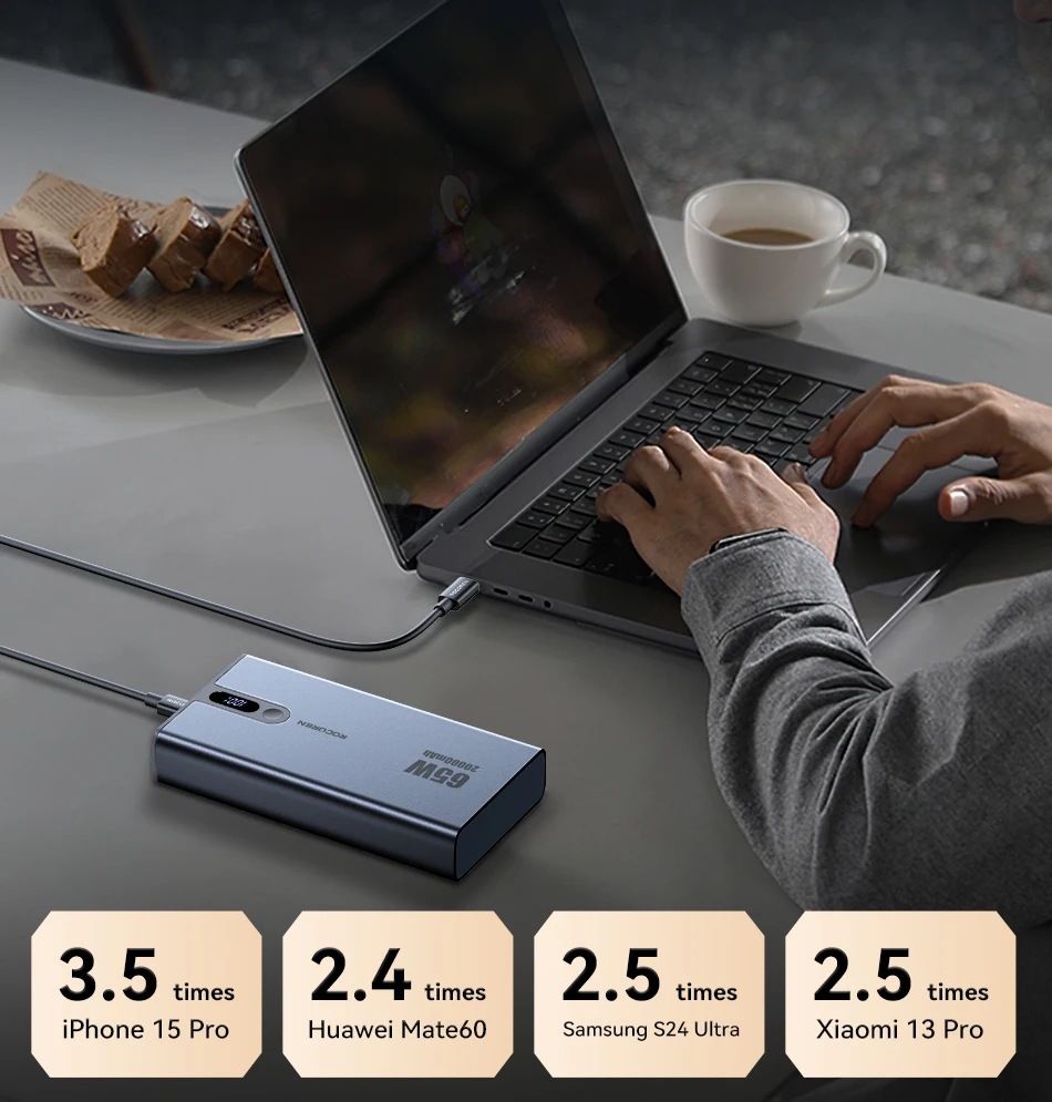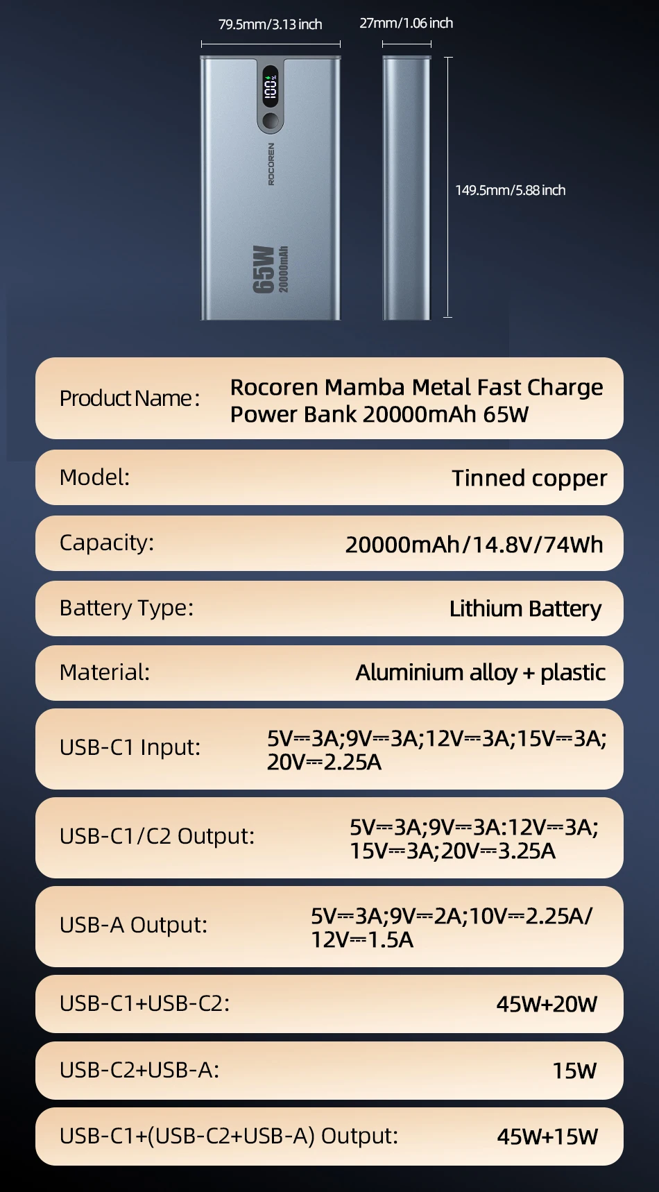 Nombre del producto:Banco de energía 20000mAh 65W Rocoren Mamba carga rápida de metal