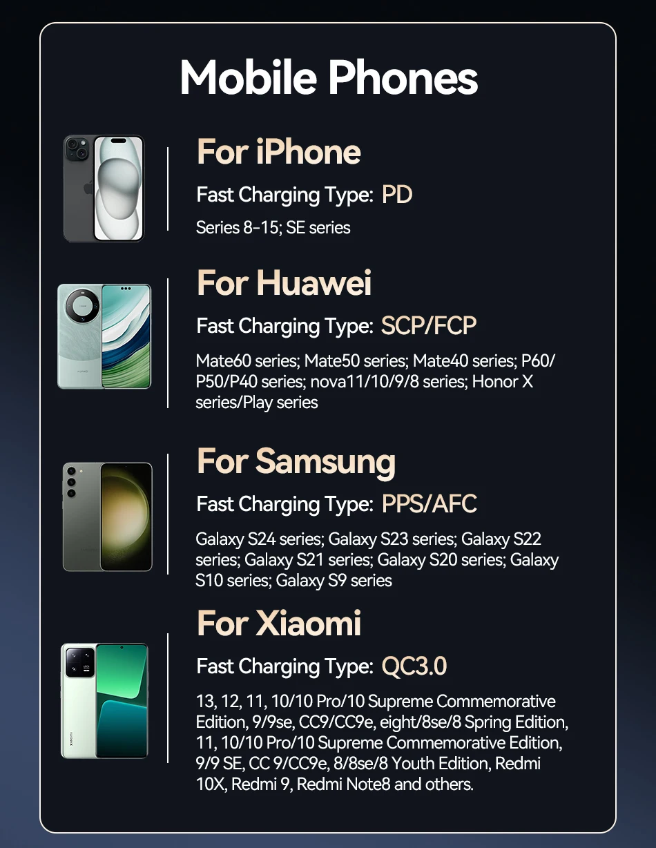 Salida USB-A:5V-3A;9V-2A;10V-2,25A/12V-1.5A