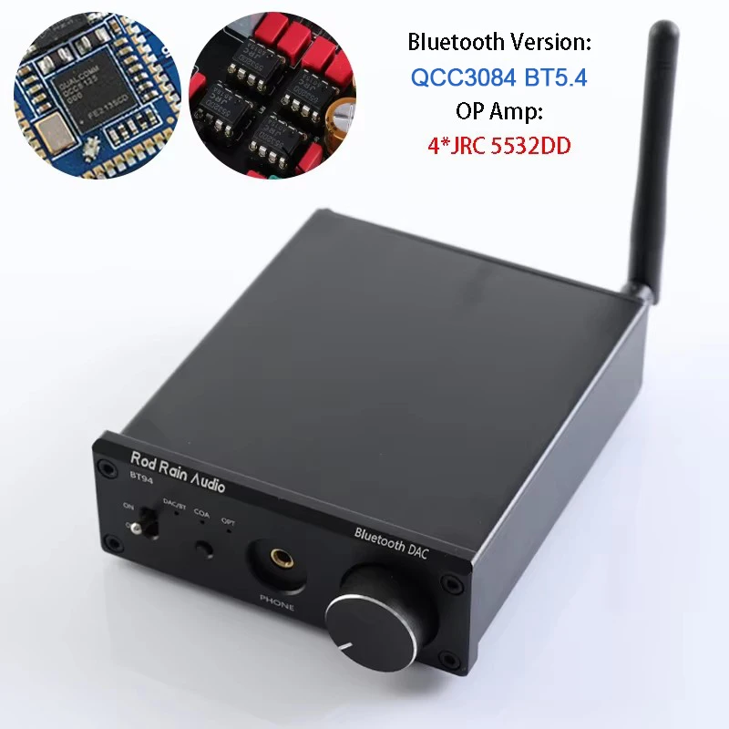 2. Este DAC adopta amplificadores operacionales duales de 4 piezas, que funcionan al mismo tiempo tanto para salida RCA como de 3,5 mm. 3. Las versiones de Bluetooth dentro del enlace se han actualizado desde la versión original QCC5171 BT5.3 aQCC3084 BT5.4versión.