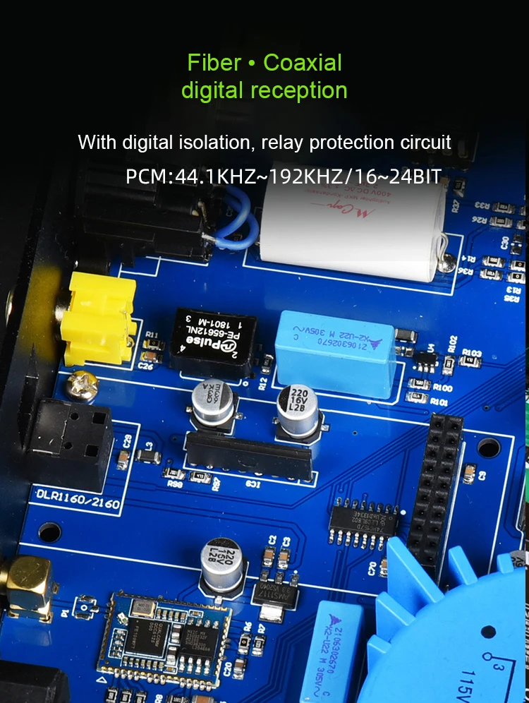 6. Entrada óptica/coaxial con aislamiento digital y diseño de protección de relé.