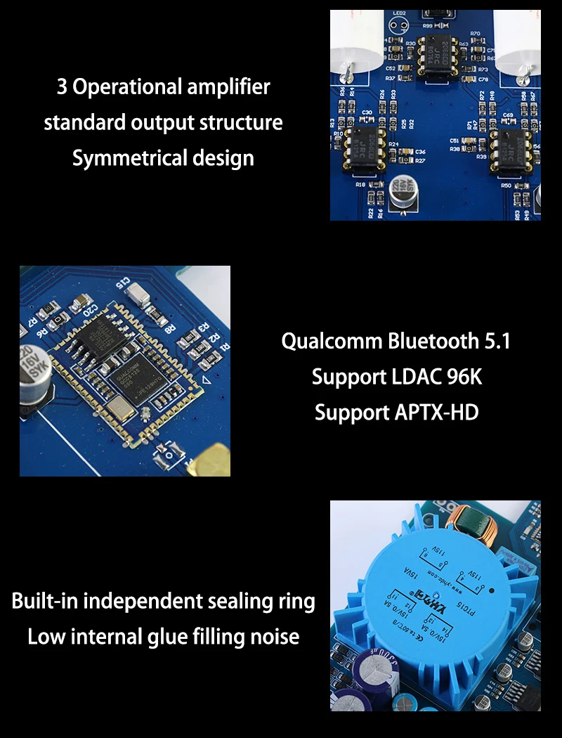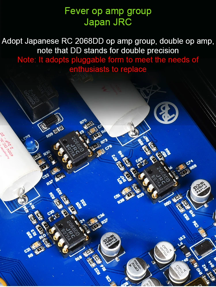 3 piezas OPA1612(El sonido es transparente, el análisis es muy bueno, el posicionamiento del campo de sonido es preciso y la distorsión es ultra baja)