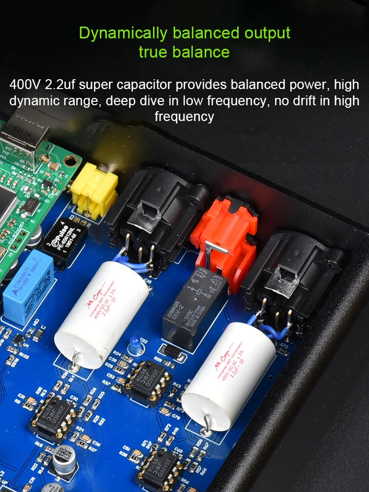 El supercondensador de 5.400V y 2,2 uF proporciona una potencia equilibrada, un alto rango dinámico, una inmersión profunda en graves y agudos más estables.