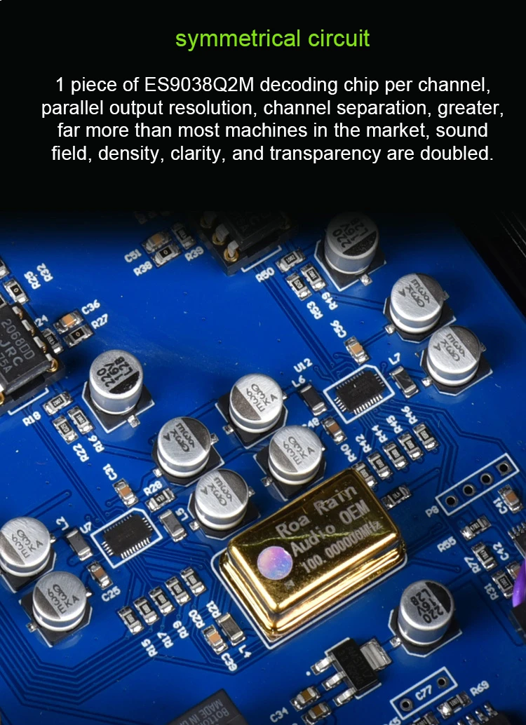 2. Un chip decodificador ES9038Q2M por canal está diseñado simétricamente, con mayor resolución y separación de canales.