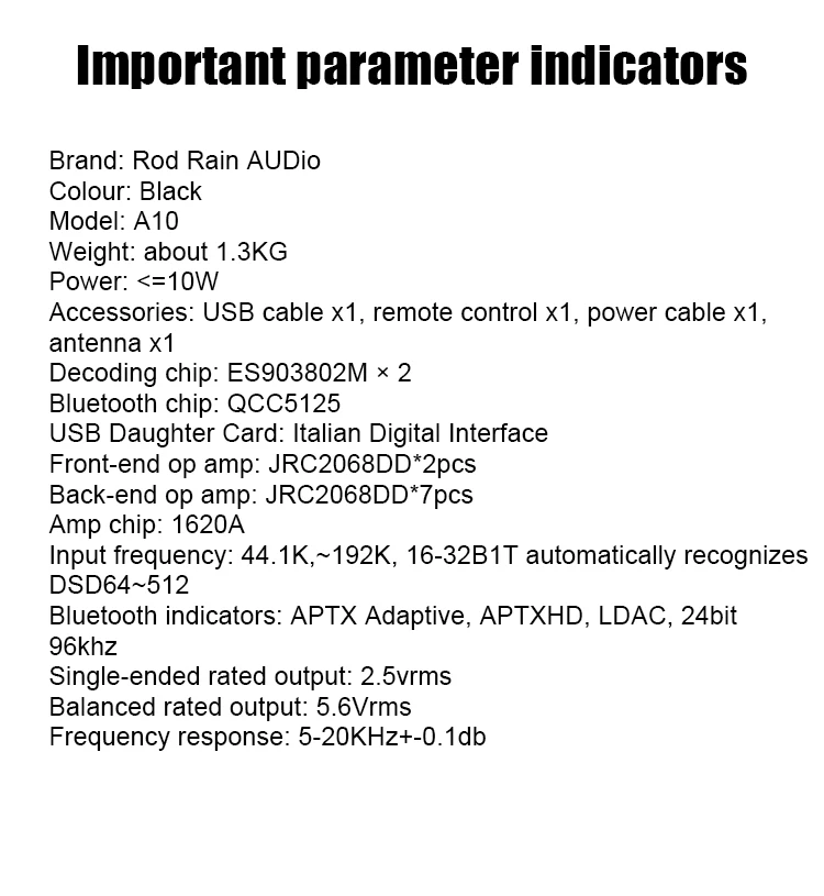 Rod Rain Audio DA10 Decodificador de audio Amplificador de auriculares Bluetooth Dual ES9038Q2M DAC QCC5125 LDAC Amanero Tarjeta USB DSD512 TPA612A2