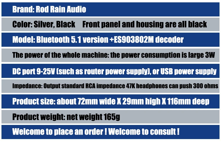 Rod Rain Audio ES9038Q2M QCC5125 USB DAC Bluetooth 5,1 Receptor inalámbrico Sonido DAC APTX-HD Decodificador LDAC sin pérdidas Amplificadores DE OÍDO