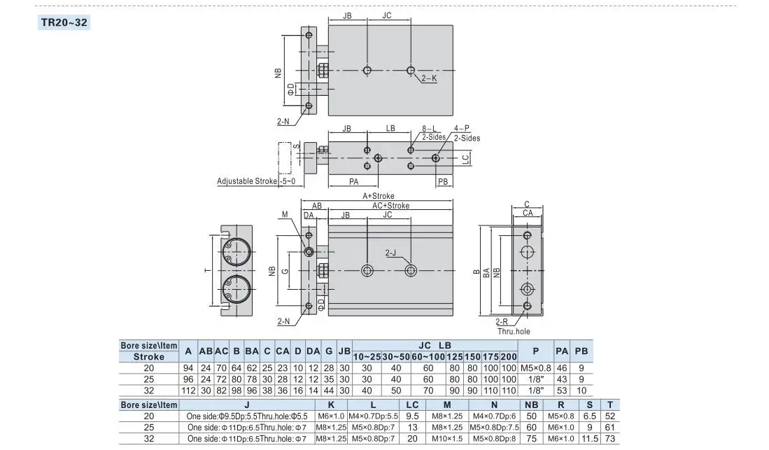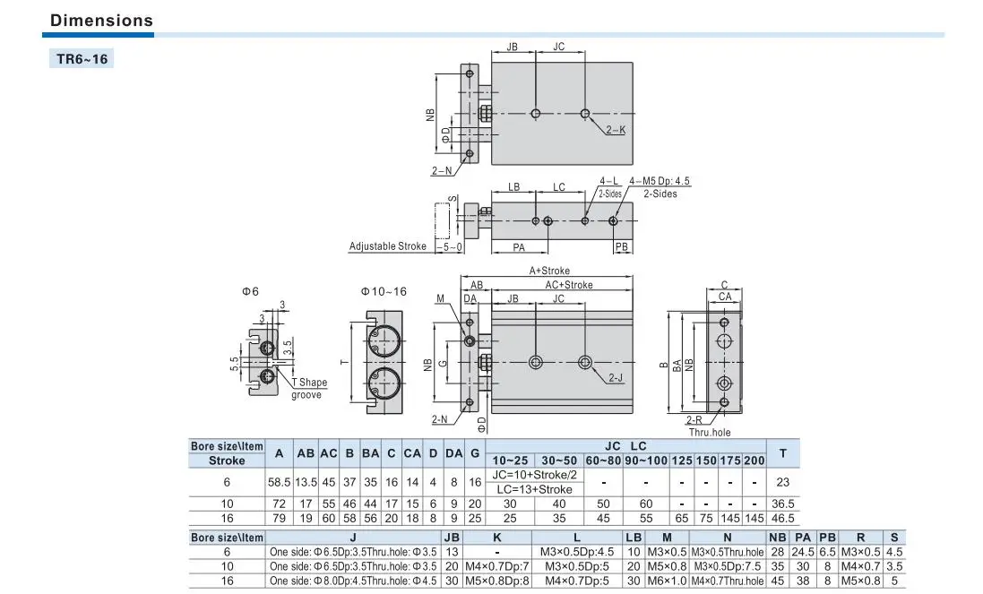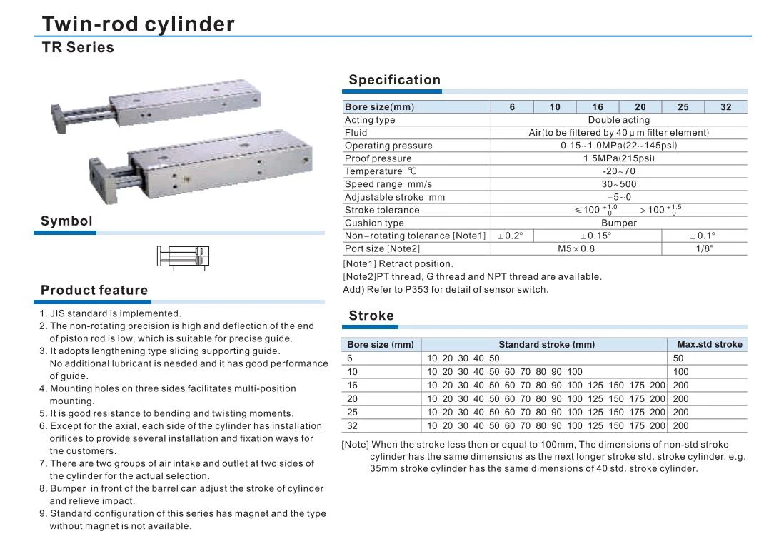 Rodamiento deslizante de cilindro de doble varilla serie TR6, cilindro neumático de aire, tr6x10s, TR6X20S, TR6X30S, TR6X40S, TR6X50S