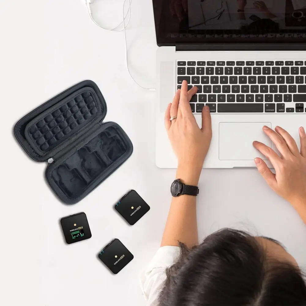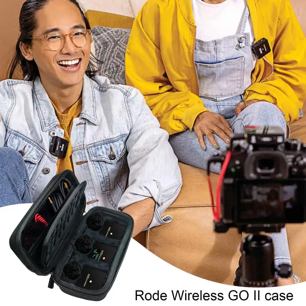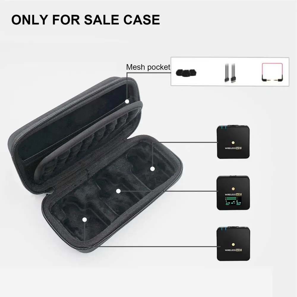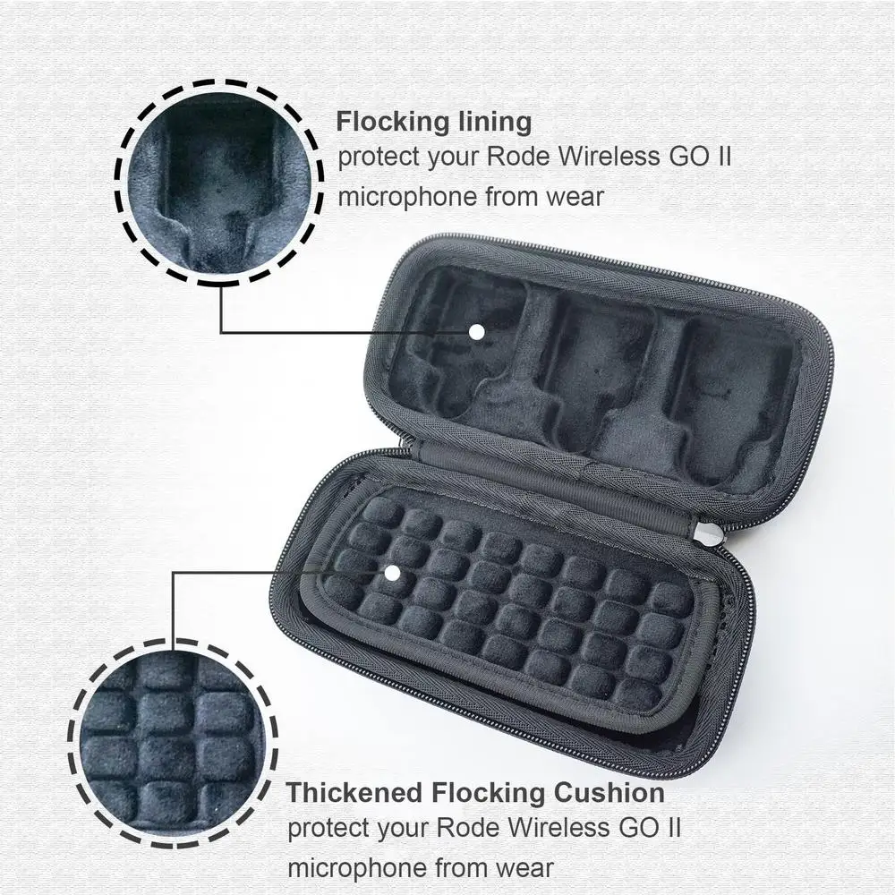 This portable organizer is specially designed for your Rode Wireless GO II microphone system. Made of EVA waterproof material, it is crush, impact, and water resistant, providing enough protection against bumps, scratches, and splashes to keep your Rode Wireless Go 2 microphone from getting wet. Even if you're traveling or out in the wild, you'll never be afraid of sudden rain. The lining is made of soft flocked material for a more comfortable touch and perfectly protects your Rode Wireless GO II microphone from abrasions. Internal mesh pocket for more accessories. Cord design, you can easily carry your device, suitable for travel and home storage.