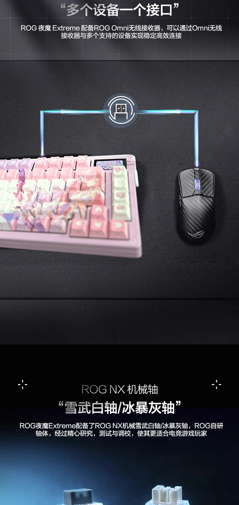 : Equipado con ROG NX Mechanical Snow Warrior White Shaft/Ice Storm Grey Shaft, el cuerpo del eje de desarrollo propio de ROG ha sido cuidadosamente investigado, probado y ajustado para hacerlo más adecuado para jugadores de deportes electrónicos.