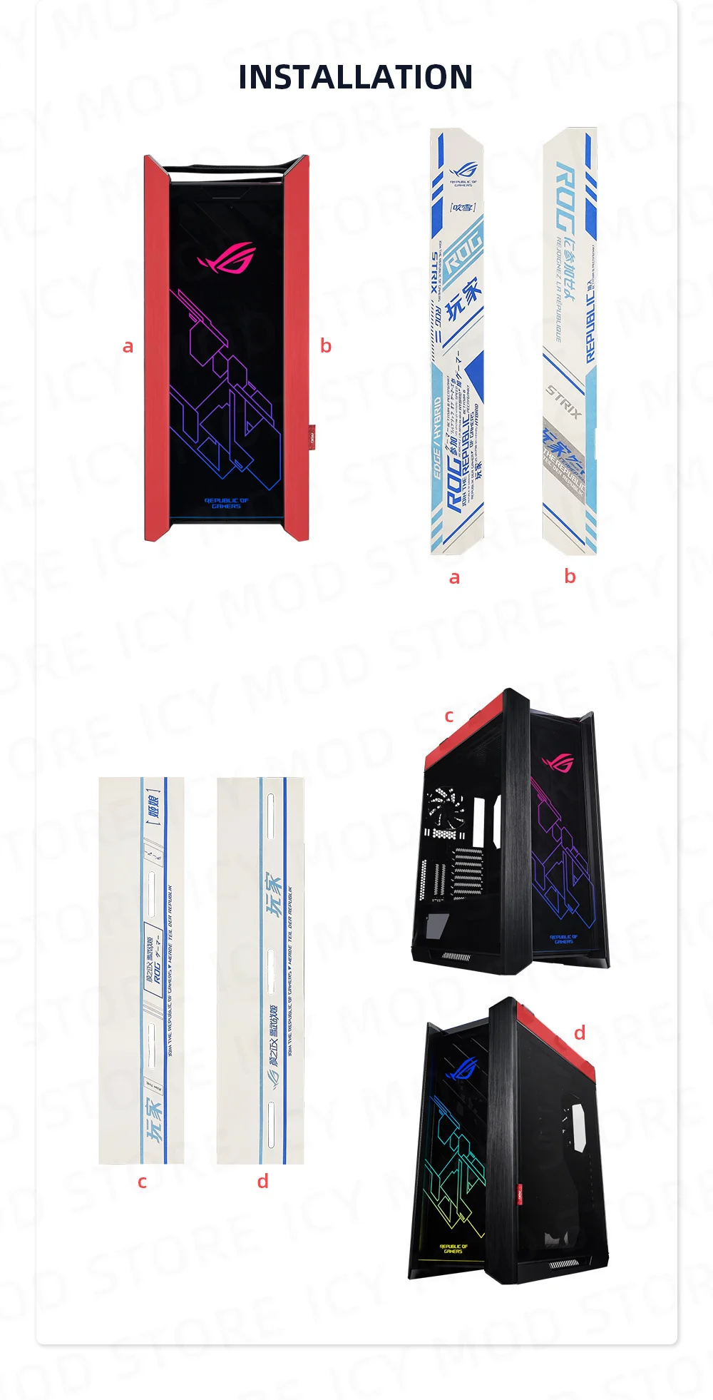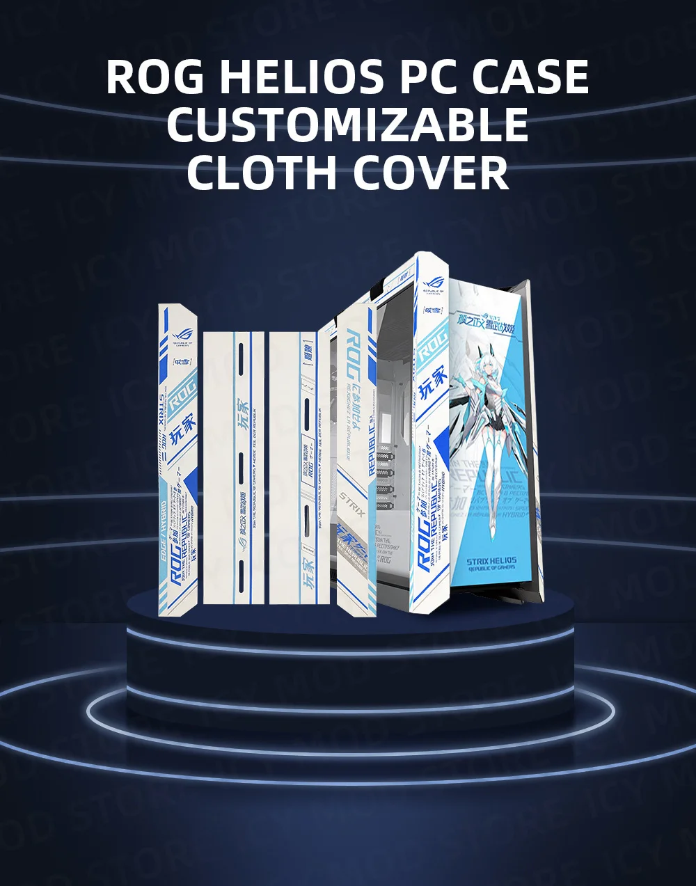 La inspiración del diseño de la decoración de ante es algo así como la decoración de coches, diseñada para la carcasa de ROG STRIX Helios PC.